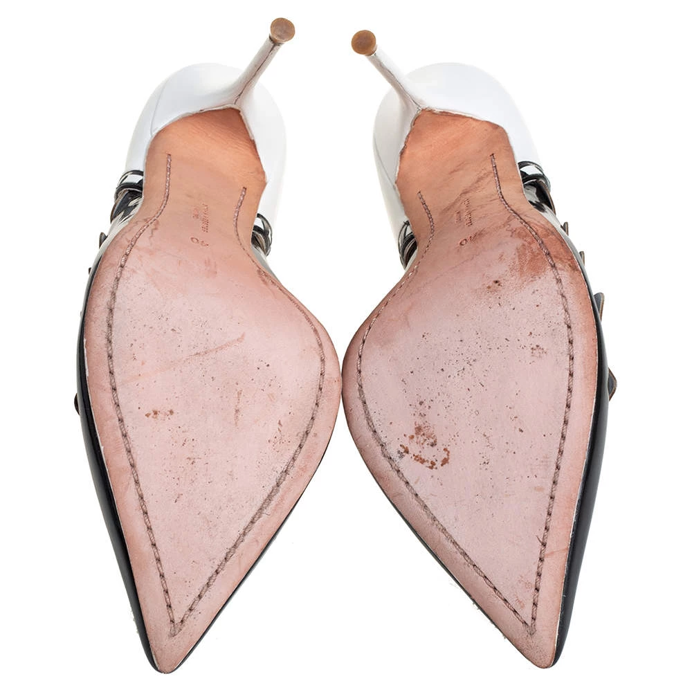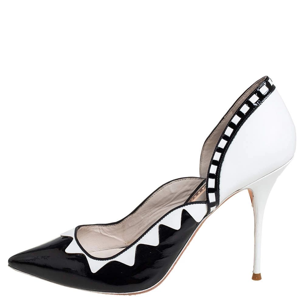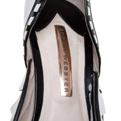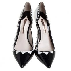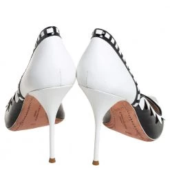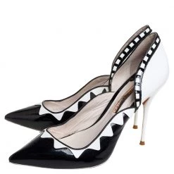 These meticulously designed Sophia Webster pumps are the perfect evening shoes. They are crafted from glossy patent leather & leather and are equipped with pointed toes and 11 cm needle heels. The leather-lined insoles feature the brand labels. Grab these black & white pumps now!