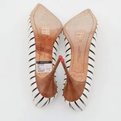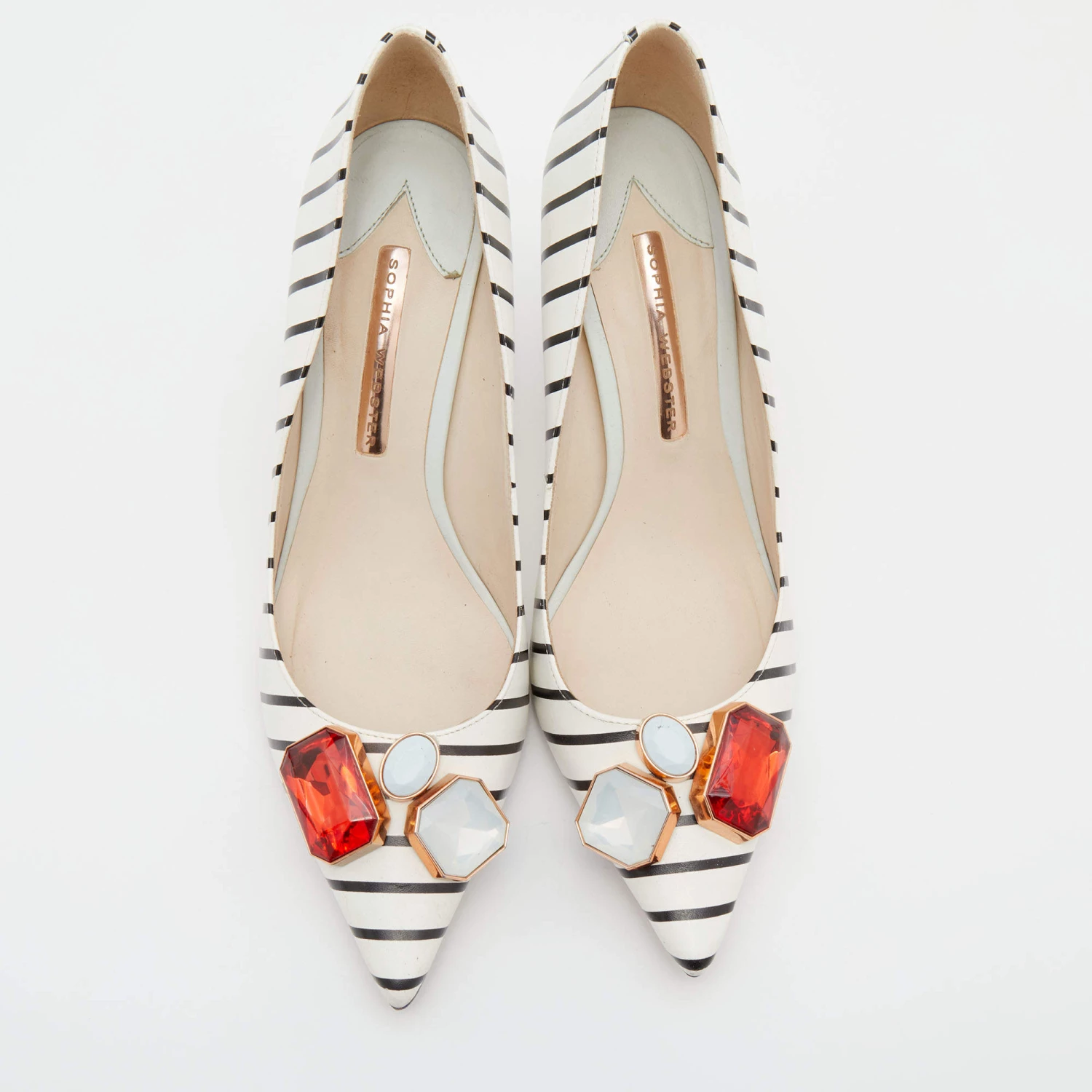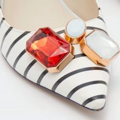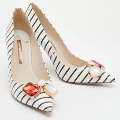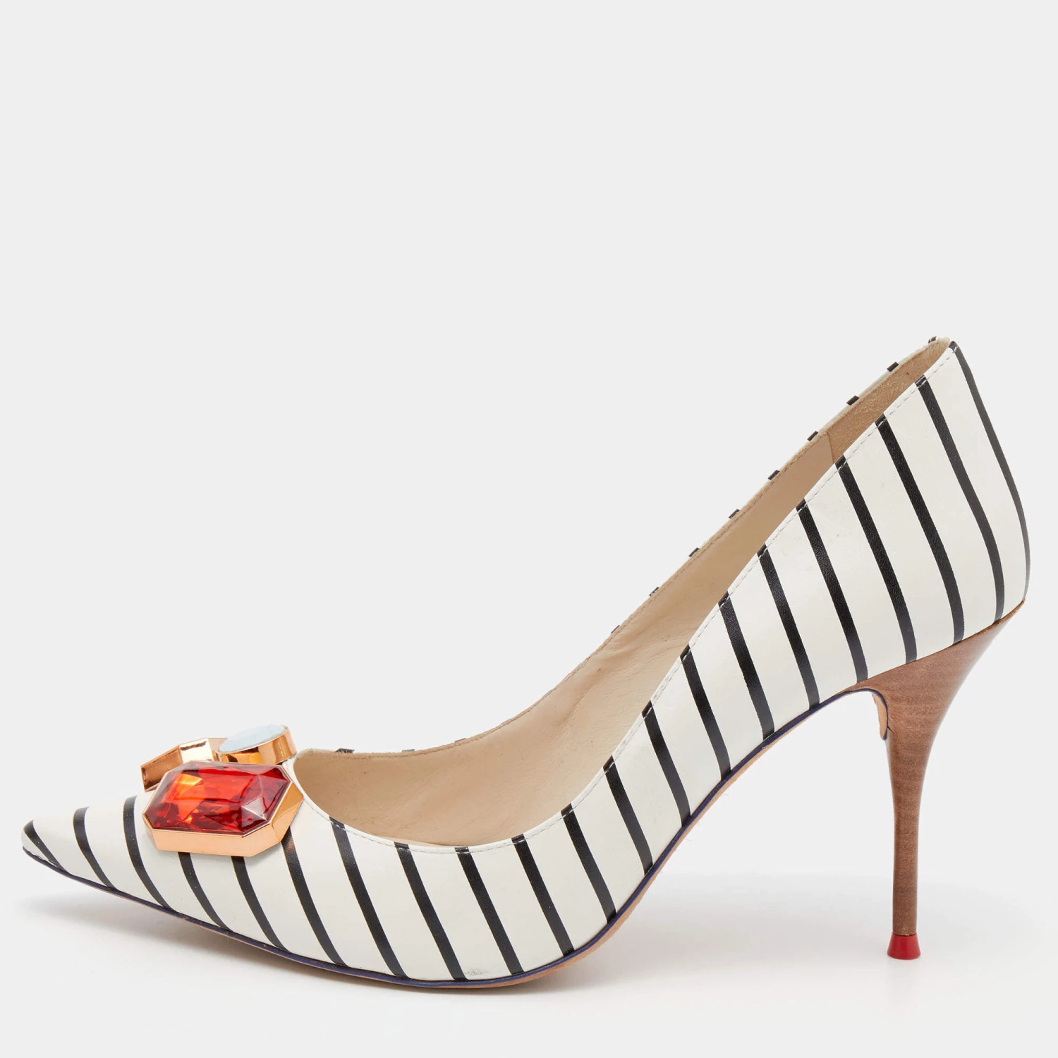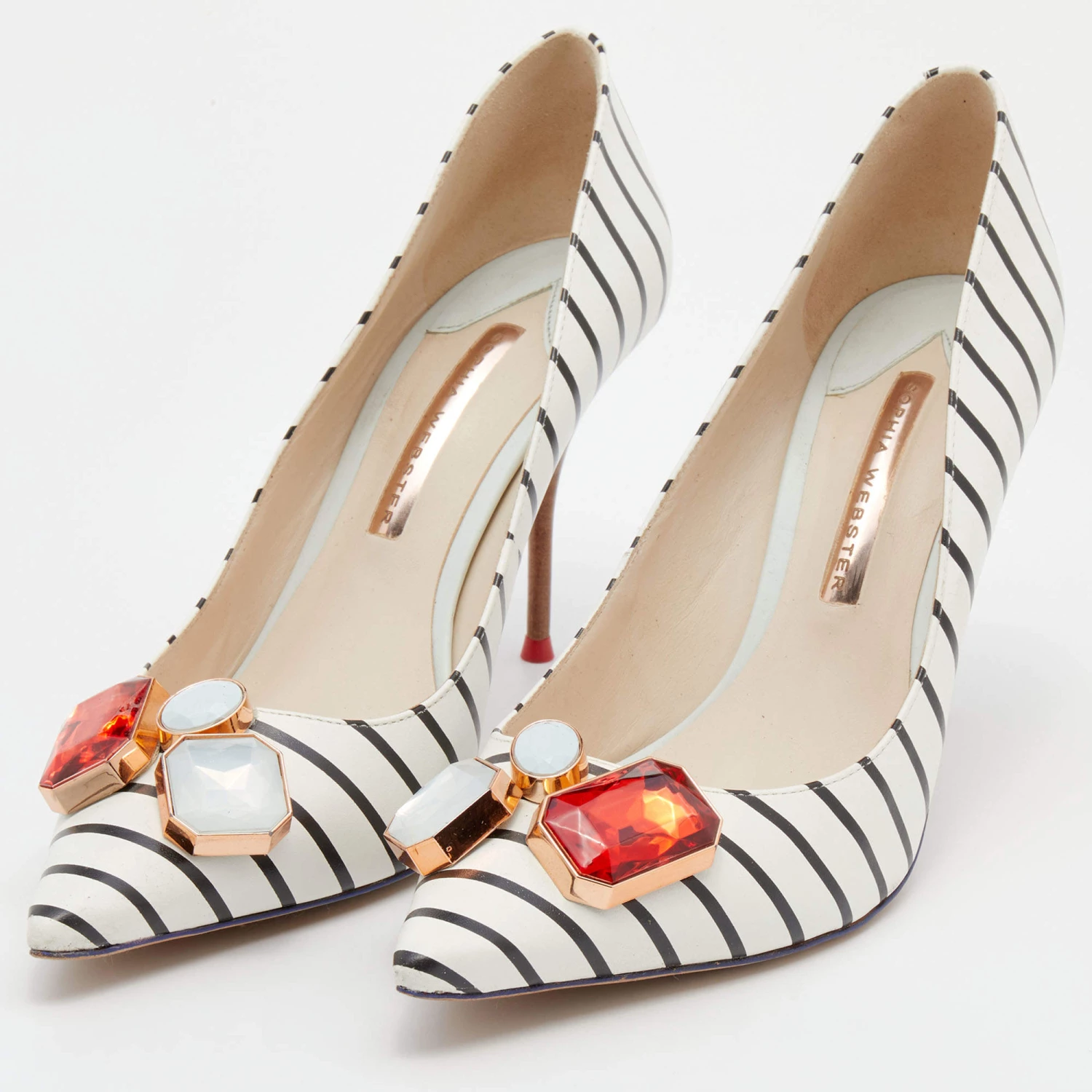 To evoke grace and elegance in every walk of yours, Sophia Webster brings you these Lola pumps that are nothing less than a dream waiting to be yours. The unique pumps are made of striped leather and are shaped into pointed toes with shimmering gems on the vamps and 9.5 cm slim heels.