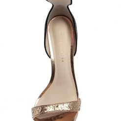 Stay stylish throughout the day in these sandals by Sophia Webster. These sandals crafted from glitter fabric and are exuding high style from every angle. They come in a combination of bronze and gold hues. To secure the toes, the sandals feature a single strap across the vamps. Ankle straps, extended counters, and 9 cm heels make them whole.