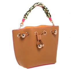 Known for its high quality and brilliant finish, this bag from Sophia Webster will be your companion for years to come. This smart bag features an appealing design and is crafted from brown leather. It comes with a shoulder strap, a multicolored single handle and a spacious interior secured by a drawstring closure.
