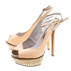 Your elegant feet deserve the best and what better than these sandals from Sophia Webster. They are crafted from canvas and designed with peep toes, slingbacks and 14 cm heels supported by raffia-woven platforms.