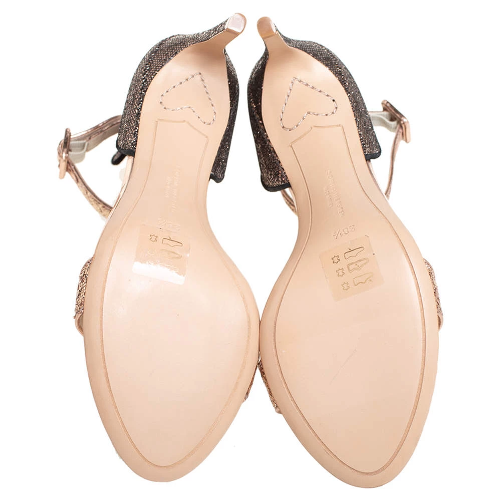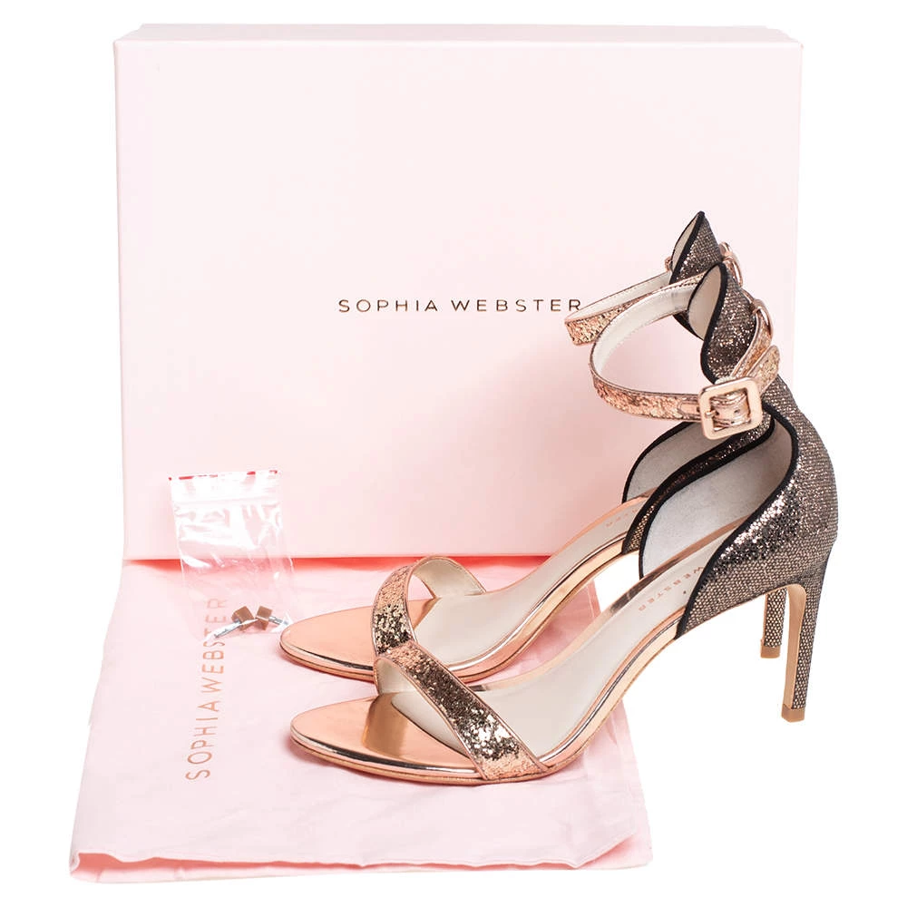 Sophia Webster’s Nicole sandals exude high octane glamour and elegance. Crafted from leather, these beauties are covered with gold glitter for a dazzling finish. The curvy panel at the heel counters characterizes the pair. Set on stiletto heels, the open-toe silhouette is ideal for your next party!