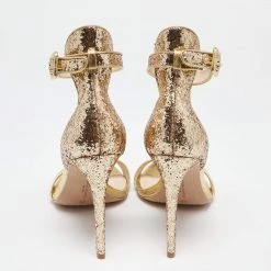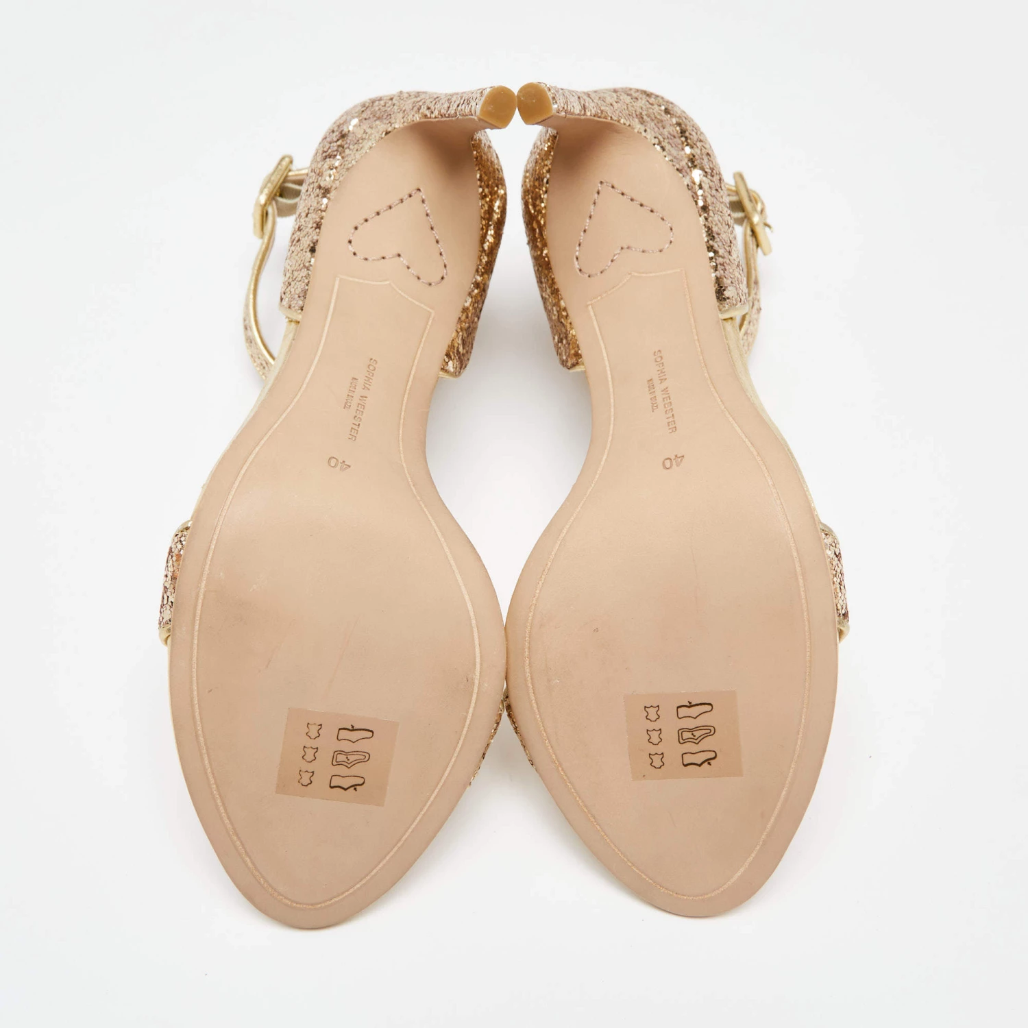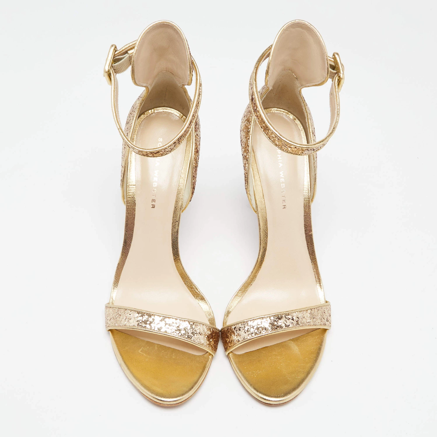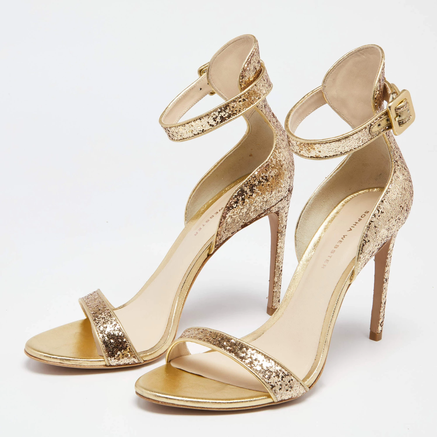 Like this pair of pumps, all creations of Sophia Webster embody feminine design and a striking appeal. Constructed from glitter and leather, it is complemented with 11cm heels, a strap on the vamps, and an ankle buckle closure. The leather insole aims to provide an all-day comfort experience.