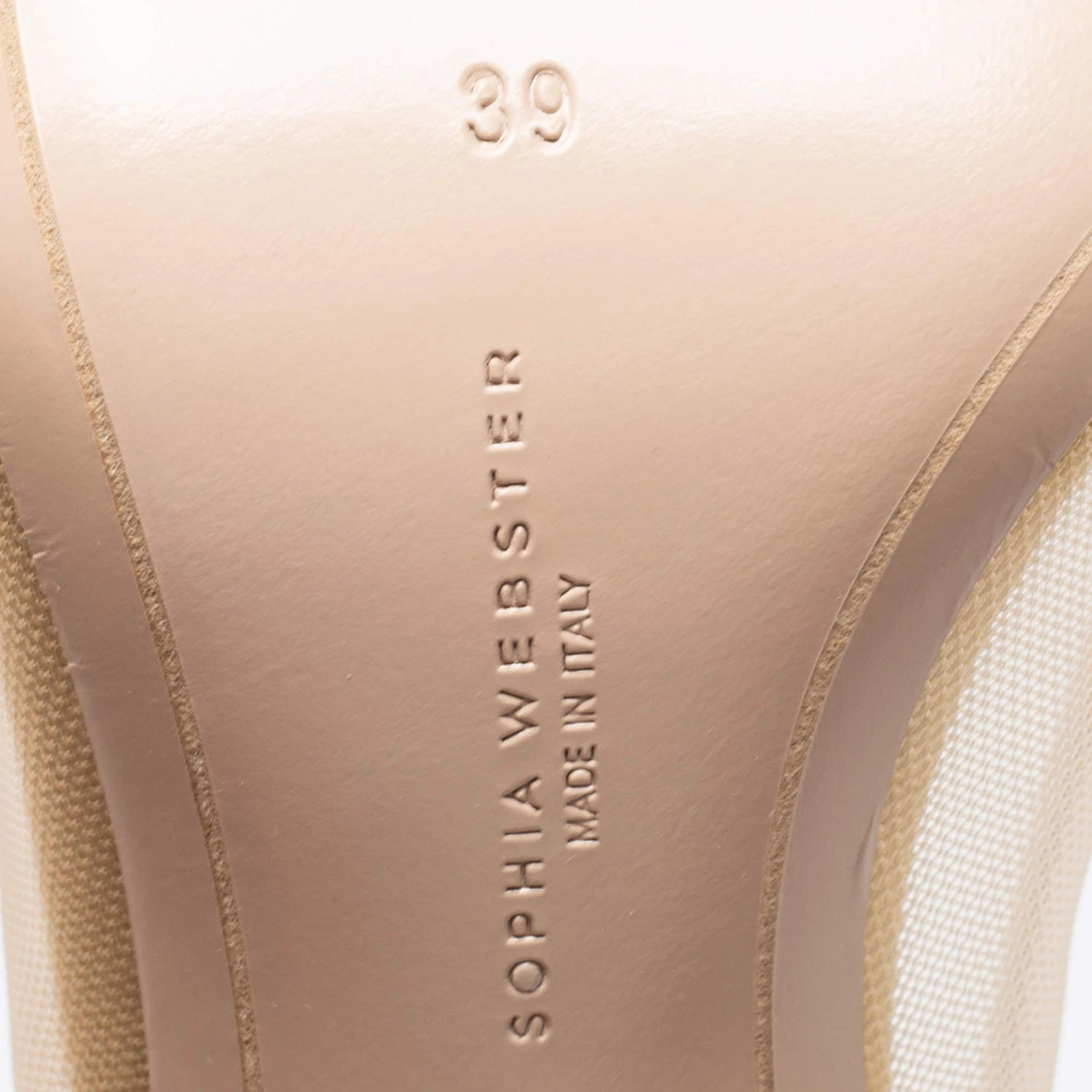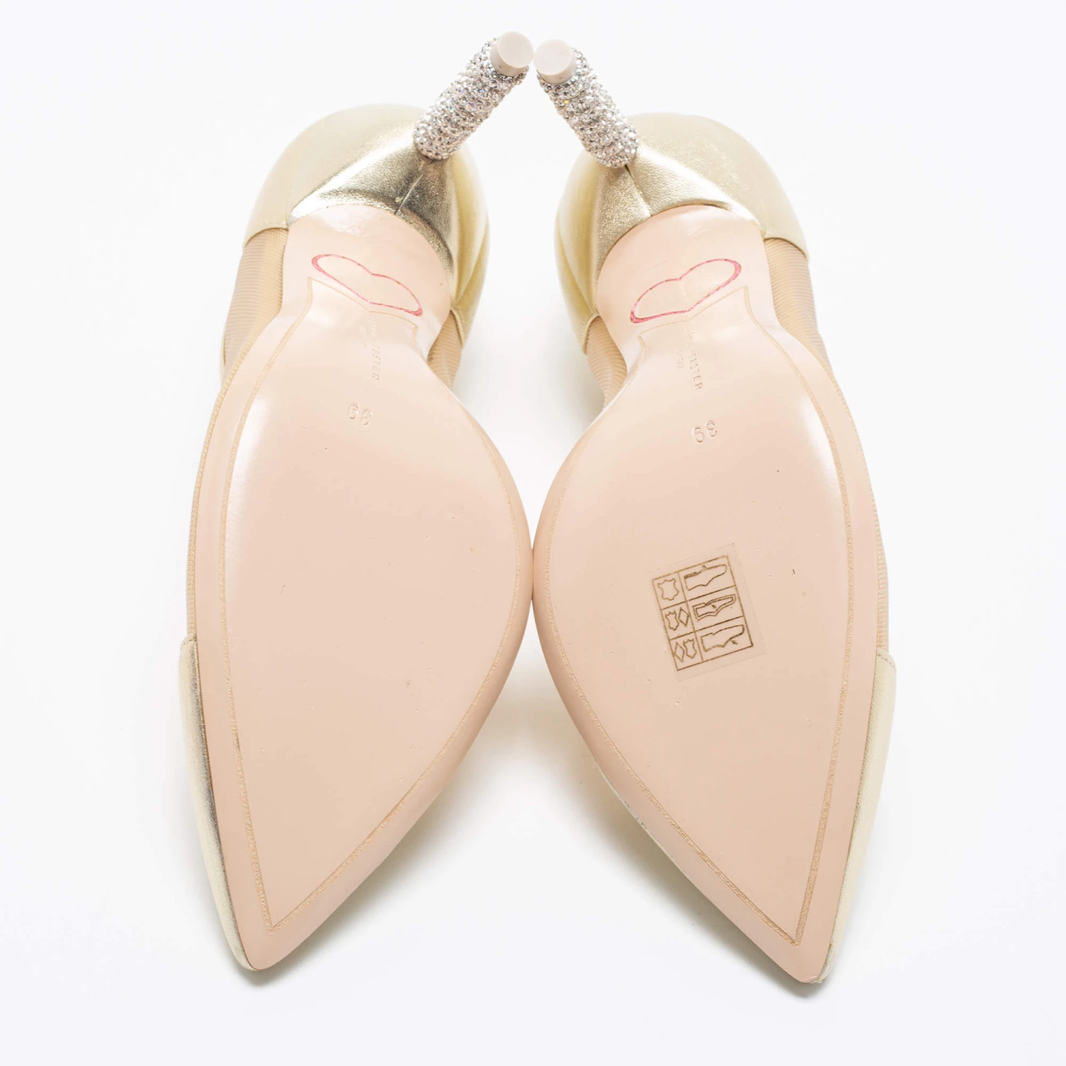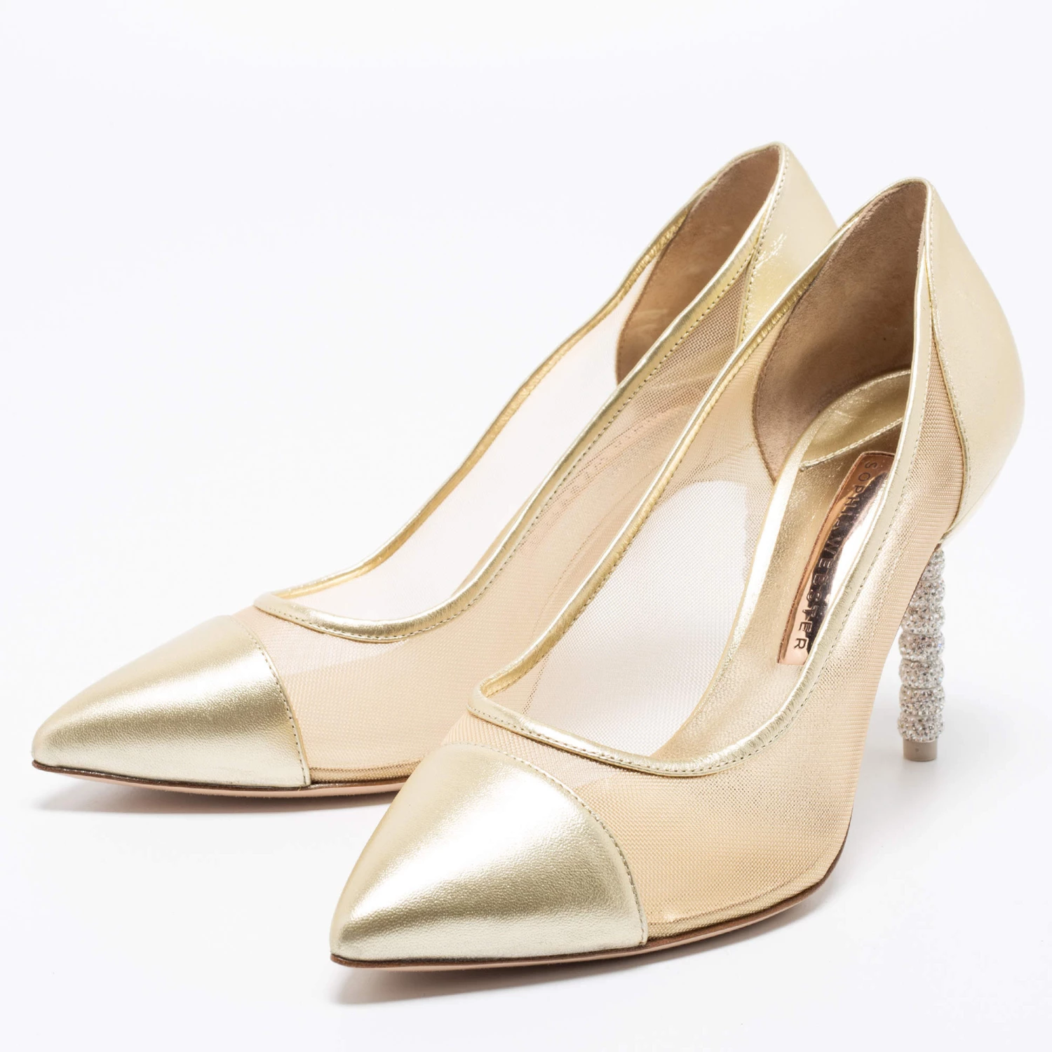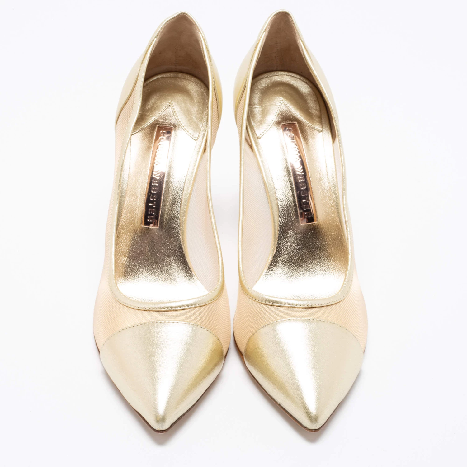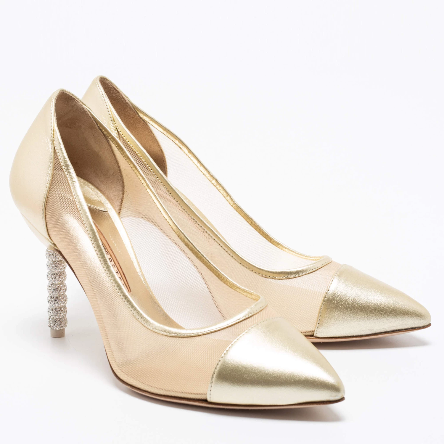 Truly a stunner! These Jasmine pumps by Sophia Webster impart a sleek and refined allure. They have been crafted using leather and mesh and shaped into a pointed-toe silhouette. What makes these pumps stand apart are the crystal-embellished heels that have a stacked look. You’re sure to get all the admiring glances in the part when you slip into them.