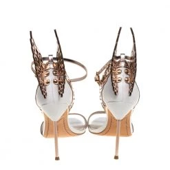 Sophia Webster has a flair for incorporating marveling ideas with shoemaking, and maybe that’s why her designs are so coveted. These “Evangeline” sandals are simply unbelievable. They flaunt an exterior made from leather and artistically designed with a single frontal strap and breathtaking laser-cut wings emerging from the counters above the 7.5 cm heels.