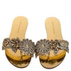 Nothing like a fabulous pair of slides to brighten up your outfit! These Sophia Webster slides are leather-made and they carry a gold hue. But what makes these slides so desirable are the mirror embellishments on the uppers. This is definitely one pair that speaks beauty in a simple way.