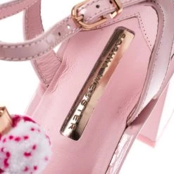 Adorable and stylish, these sandals from Sophia Webster are just perfect for the fashionable you! The blush pink Jada sandals are crafted from patent leather and feature an open toe silhouette. They flaunt a T strap design, ankle straps and pom pom accents. Leather-lined insoles and short block heels complete this stunning pair.