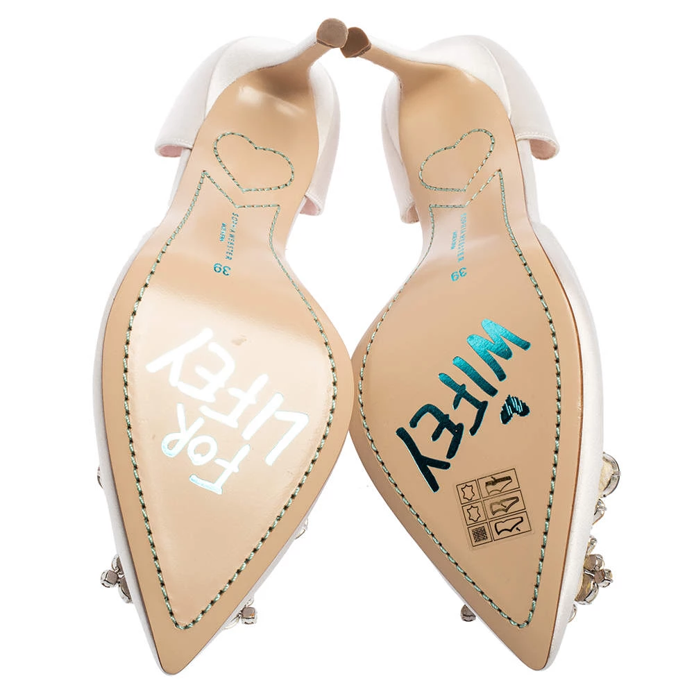 Sophia Webster is well-known for graceful designs, and the label is synonymous with opulence, femininity, and elegance. These Margaux pumps are crafted from satin into a pointed toe silhouette augmented by the embellishments perched on the uppers. They are elevated on 10.5 cm heels and can amp up your look instantly.