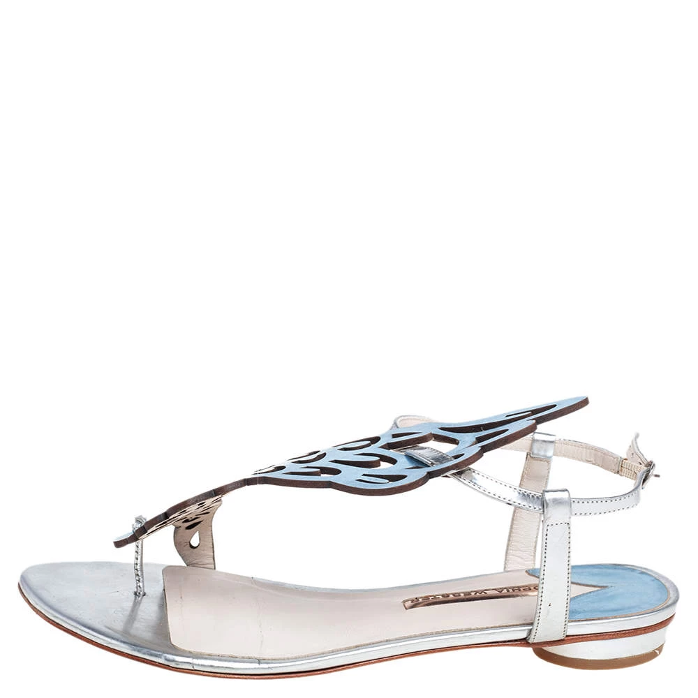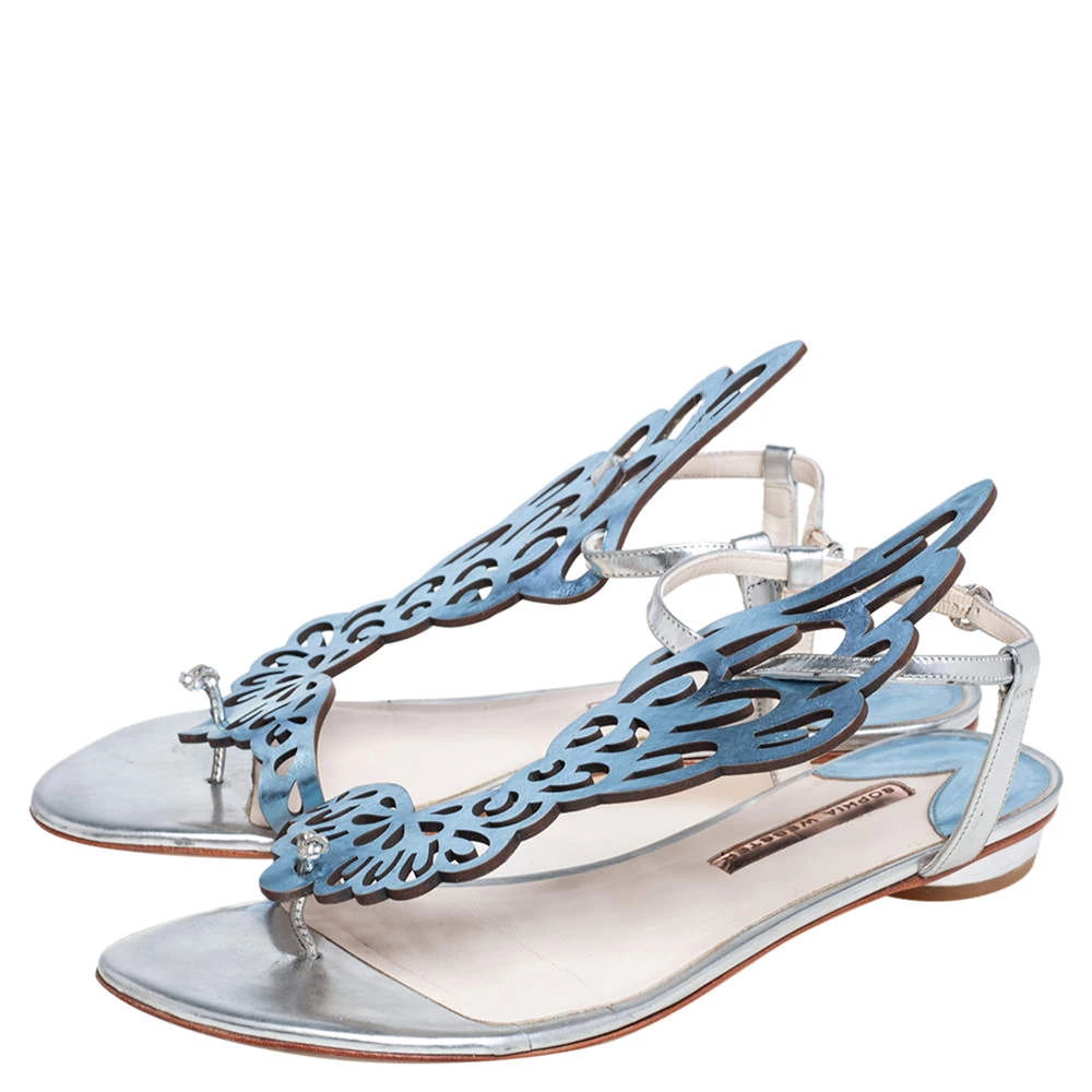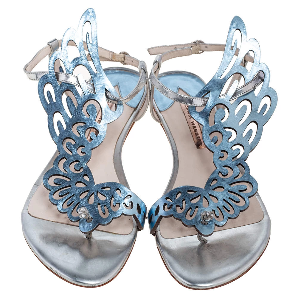 Let your style fly high with these flats from Sophia Webster! Beautifully crafted from metallic blue leather, they feature open toes, buckle ankle straps, and a butterfly design on the vamps. You’re sure to love owning this gorgeous pair.
