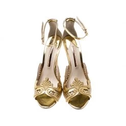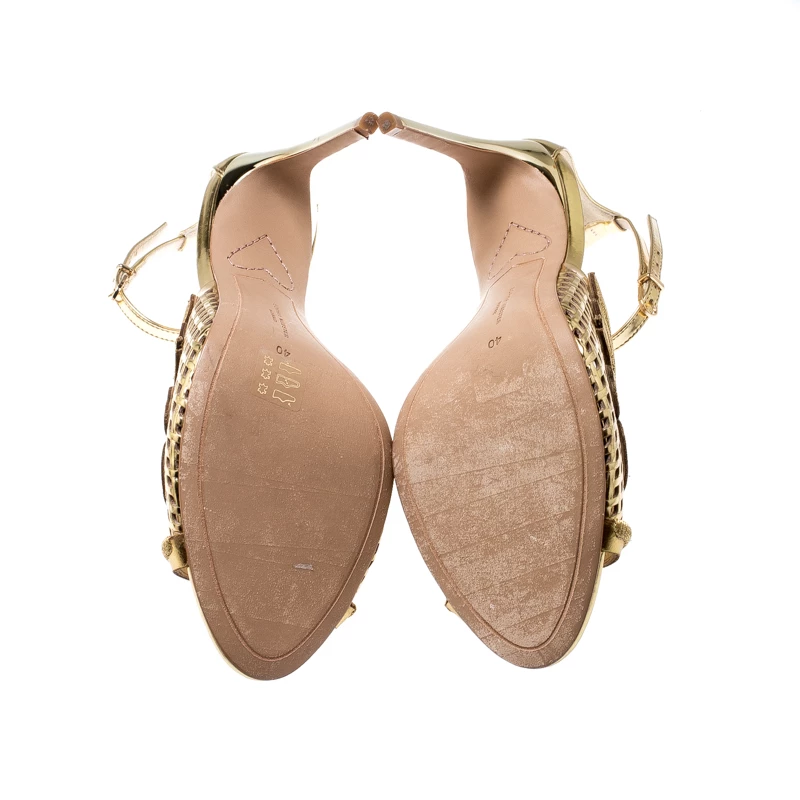 Beauty flows out of these sandals from Sophia Webster! Wonderfully made from metallic gold mirror leather, these sandals have a majestic design accompanied by ankle straps with buckles and 11 cm heels to help you stand tall.
