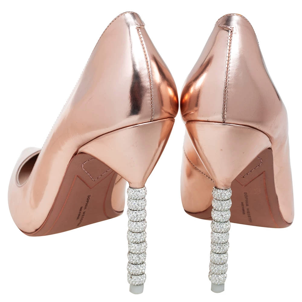 Truly a stunner! These Coco pumps by Sophia Webster impart a sleek and refined allure. They have been crafted using patent leather and shaped into a pointed-toe silhouette. What makes these pumps stand apart are the crystal-embellished heels that have a stacked look. You’re sure to get all the admiring glances in the part when you slip into them.
