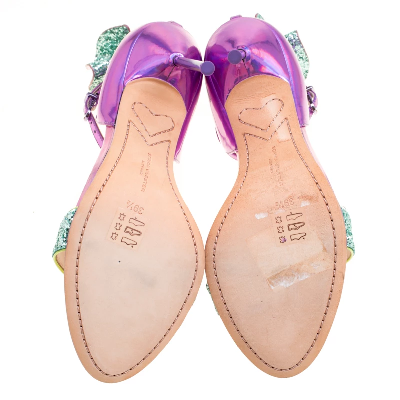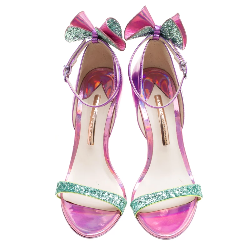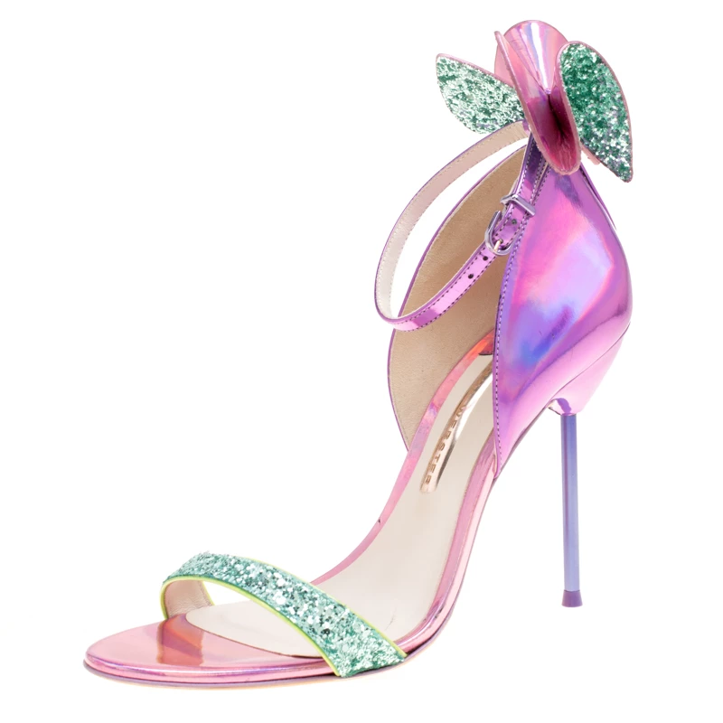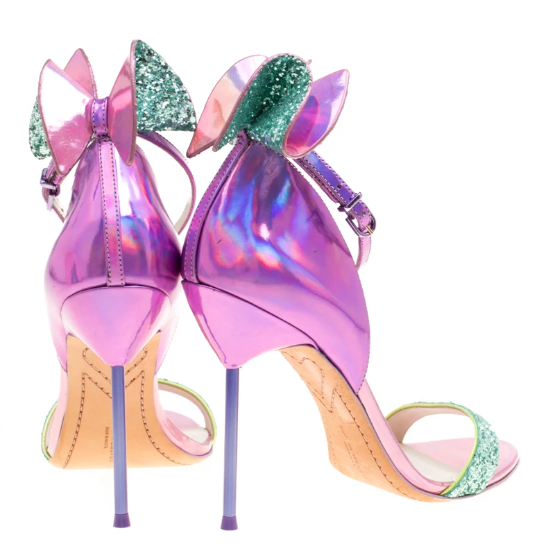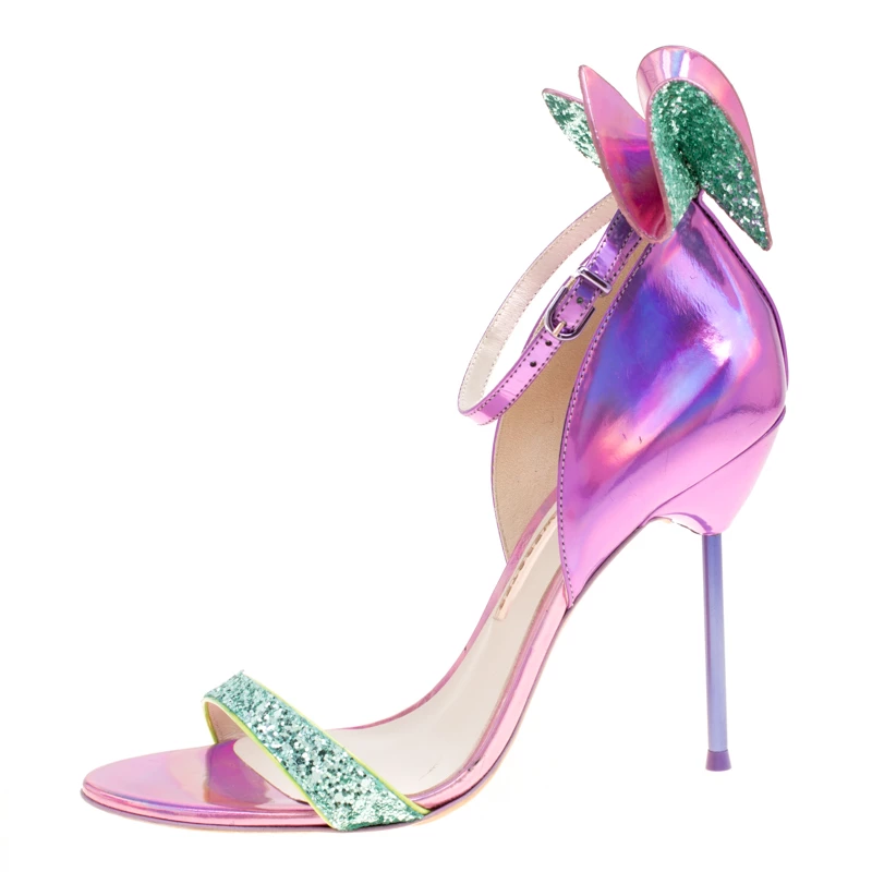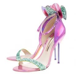 What beauty are these sandals from Sophia Webster! Crafted from metallic iridescent pink leather, these sandals have crystal-embellished bows on the counters for a glamorous touch. They’ll help you stand tall with the slim 11.5 cm heels.