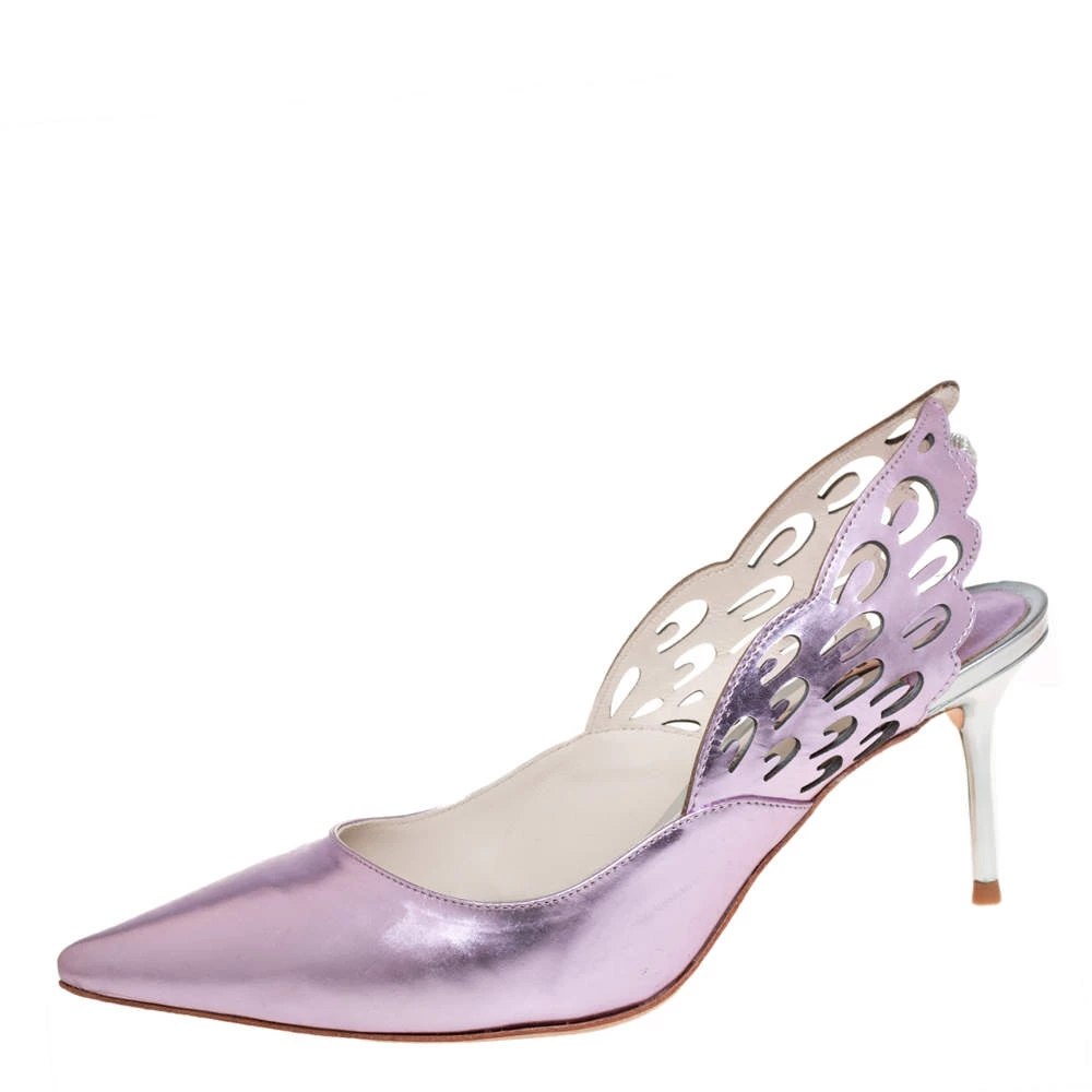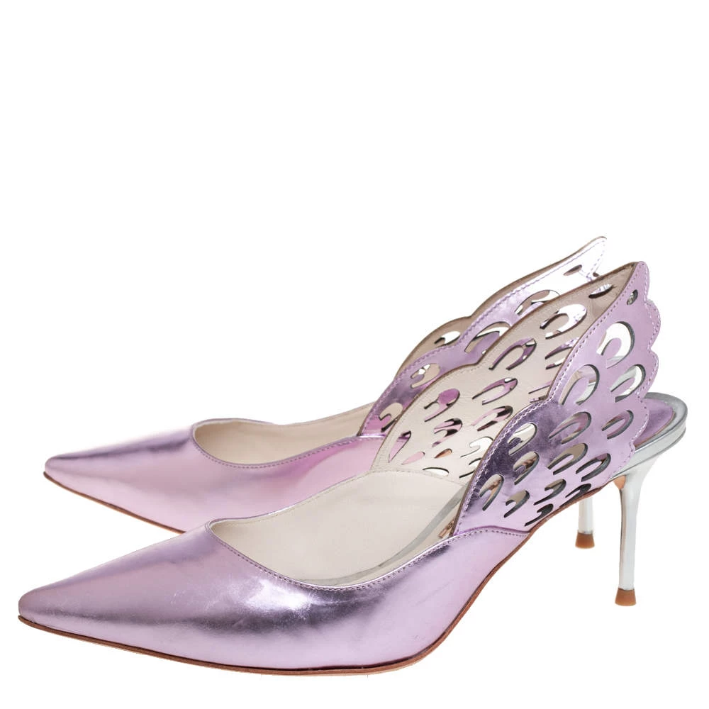 Sophia Webster charms us with these Angelo pumps that are crafted from quality leather in a metallic pink hue. They flaunt pointed toes and slingbacks shaped as wings extending out beautifully. They come equipped with comfortable leather-lined insoles and 7.5 cm stiletto heels.