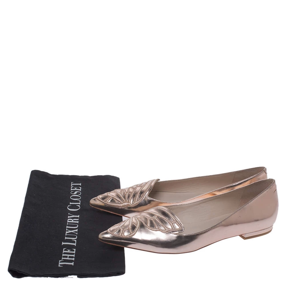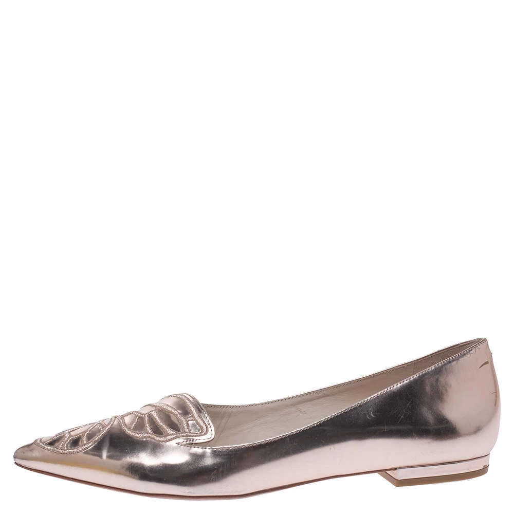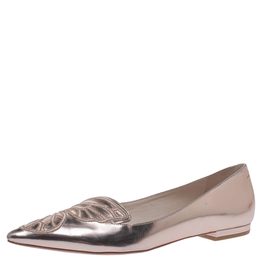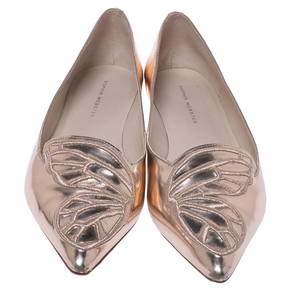 Known for her whimsical designs, Sophia Webster is a name known well with shoe lovers. These Bibi Butterfly ballet flats are crafted from metallic rose gold leather and designed with pointed toes and beautiful butterfly detailing on the vamps. The flats are leather-lined on the insoles to ensure long-lasting comfort and durability.