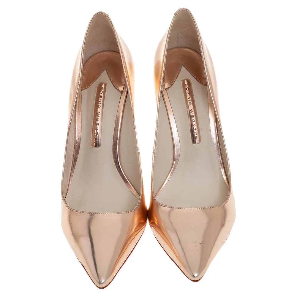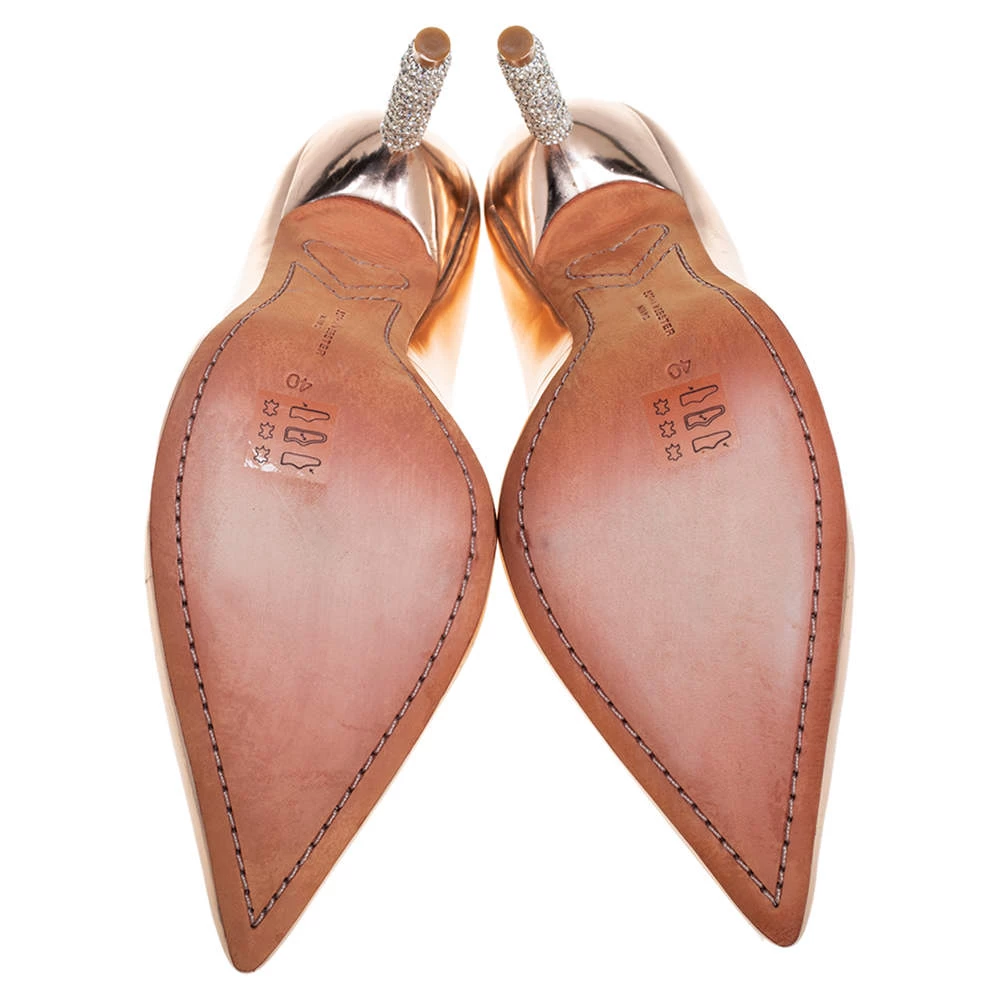 Truly a stunner! These Coco pumps by Sophia Webster impart a sleek and refined allure. They have been made from metallic rose gold leather and shaped into a pointed-toe silhouette. What makes these pumps stand apart are the crystal-embellished heels that have a stacked look. You’re sure to get all the admiring glances in the part when you slip into them.