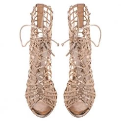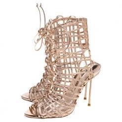 You’ll love walking in these Delphine sandals from Sophia Webster! These metallic rose gold sandals are crafted from leather into a peep-toe silhouette. They flaunt a cage design secured with tie-ups and are lifted on stiletto heels. Pair them with a statement dress and a top handle bag.