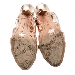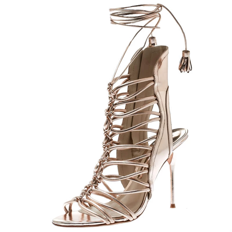 These sandals from Sophia Webster look absolutely breathtaking! The sandals are crafted from leather and designed in a strappy layout bound by side zippers and tie-ups around the ankles. Balanced on 11 cm heels, this lovely pair will have everyone in admiration.
