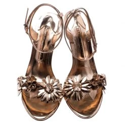 Create your own style statement with these fashionable sandals from Sophia Webster. These metallic rose gold sandals are crafted from leather and feature an open toe silhouette. They flaunt lovely flowers embellished on the vamp straps and come equipped with buckled ankle wraps. Comfortable leather-lined insoles and 10.5cm heels complete this gorgeous pair.