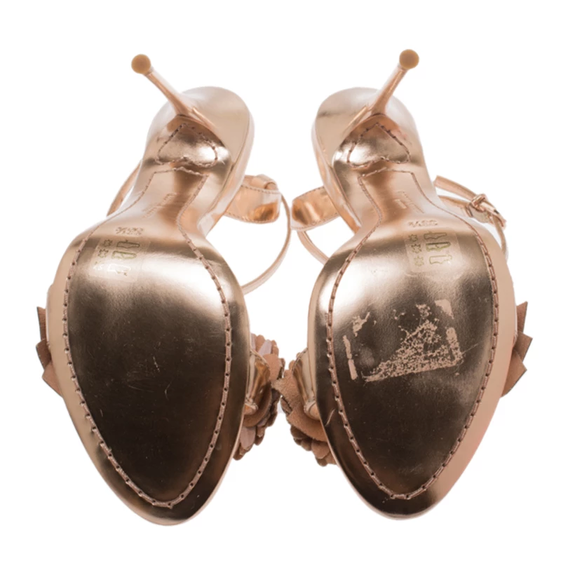 Create your own style statement with these fashionable sandals from Sophia Webster. Wear these leather shoes when you go out and watch all heads turn towards you. Lined with strong and durable leather, this stylish footwear is perfect for any season. Wear this metallic pair and look chic no matter what occasion it is.