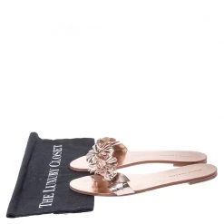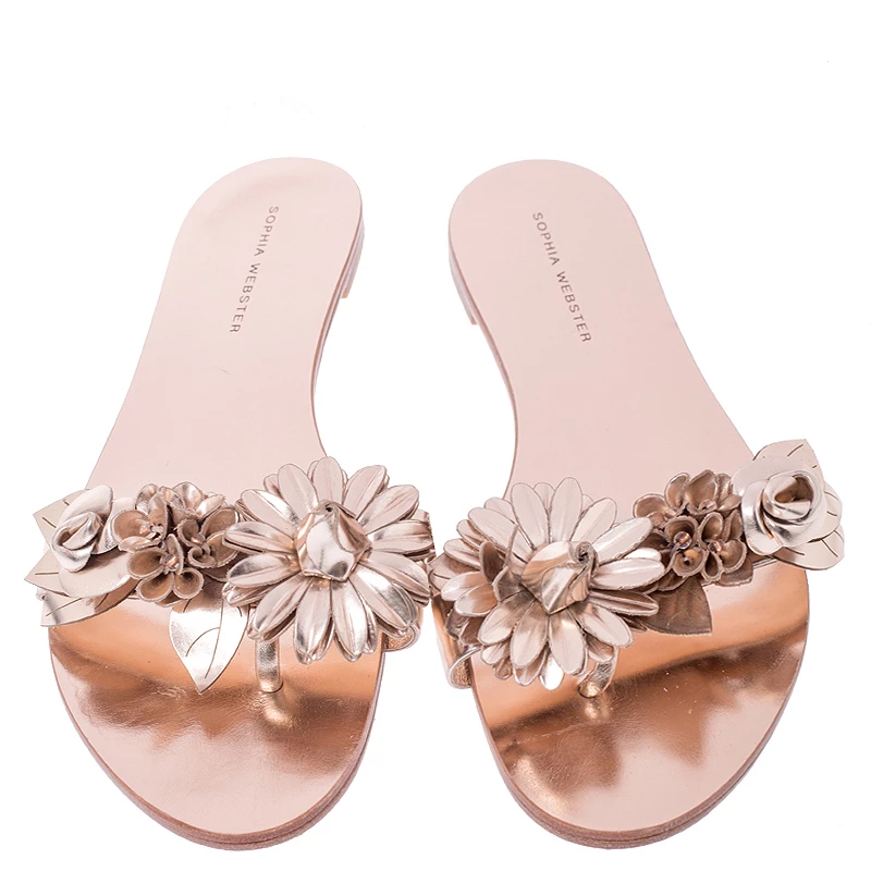 Nothing like a fabulous pair of slides to brighten up your outfit! These Sophia Webster slides are leather-made and they carry a metallic rose gold shade. But what makes these slides so desirable are the beautiful flowers embellished on the uppers. This is definitely one pair that speaks beauty in a simple way.