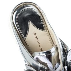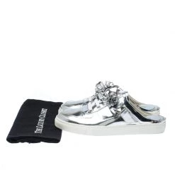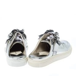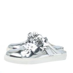 These mules from Sophia Webster are just right on trend! They are crafted from metallic silver foil leather and designed in a slip-on sneaker style with laces and flower appliques on the uppers. This eye-catching pair is sure to have everyone in admiration.