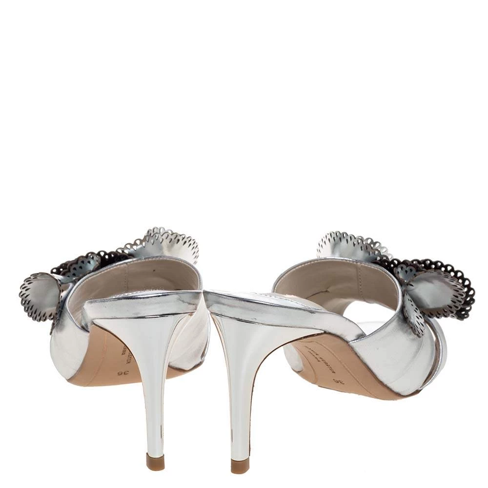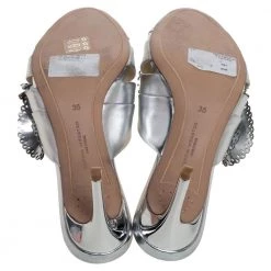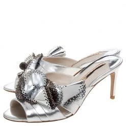 From Sophia Webster comes this pair of dazzling mules that will exude luxury at each step. Crafted from metallic silver leather, these mules feature open toes, ruffle-like detailing on the uppers and 7 cm heels.