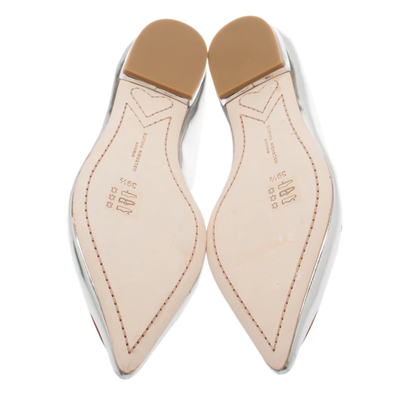Known for her whimsical designs, Sophia Webster is a name known well with shoe lovers. These Bibi ballet flats are crafted from metallic silver leather and designed with pointed toes and beautiful butterfly detailing on the vamps. The flats are leather lined on the insoles to ensure long-lasting comfort and durability.
