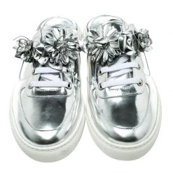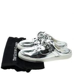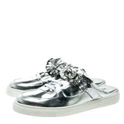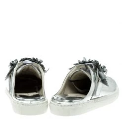 These mules from Sophia Webster are just right on trend! They are crafted from metallic silver leather and designed in a slip-on sneaker style with laces and flower appliques on the uppers. This eye-catching pair is sure to have everyone in admiration.
