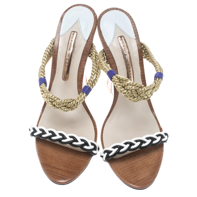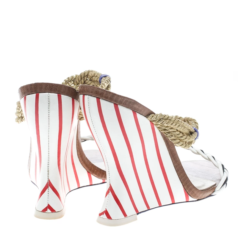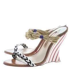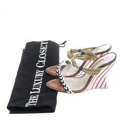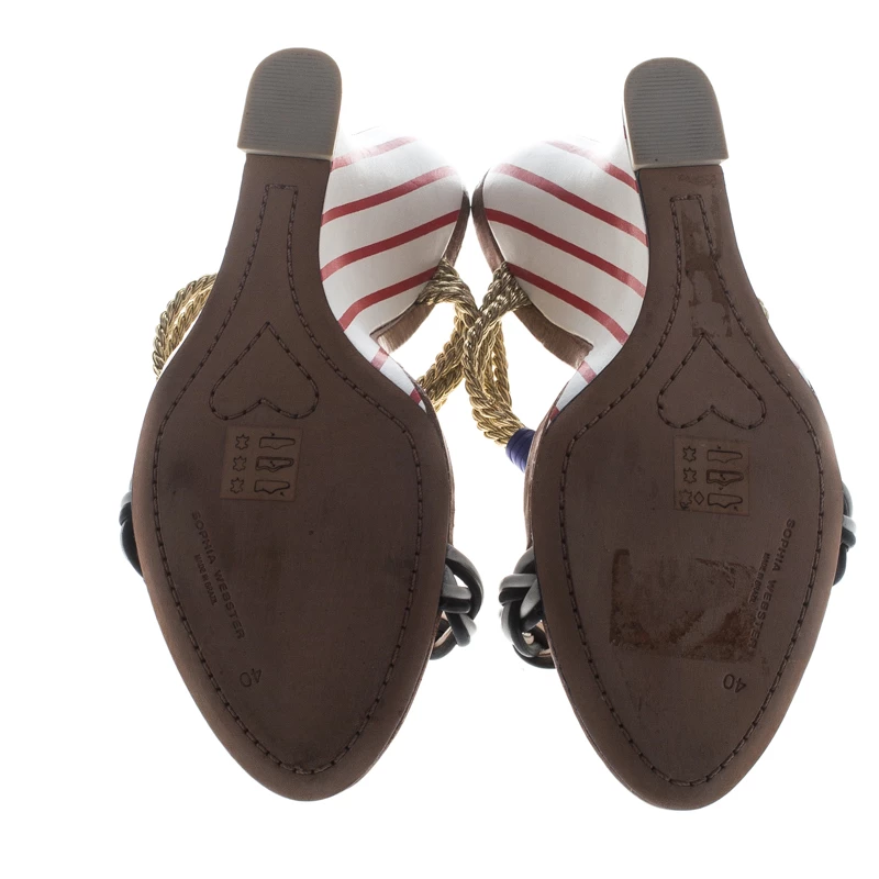 Chic, smart and very stylish, these Tiffani sandals from Sophia Webster deserve a very special place in your wardrobe! The multicolour sandals are crafted from leather and metallic chord and feature an open toe silhouette. They flaunt braided straps and come equipped with comfortable leather lined insoles and 11.5 cm solid wedge heels. Pair them with maxi dresses or pleated skirts for your special outings.