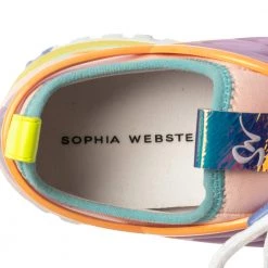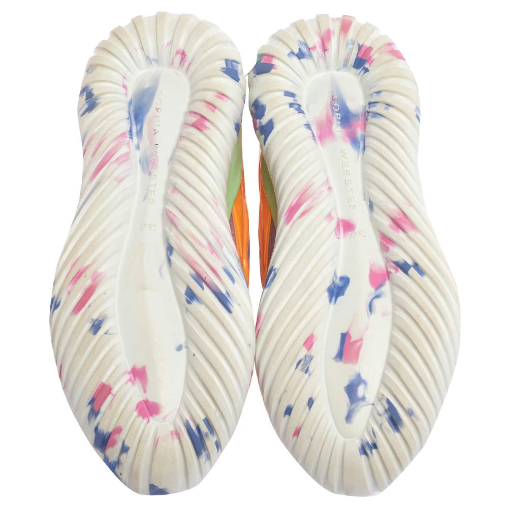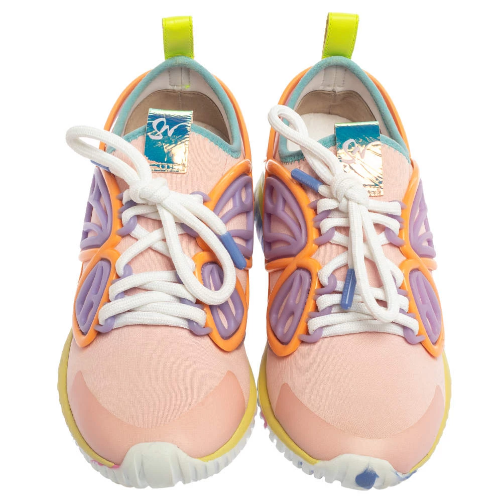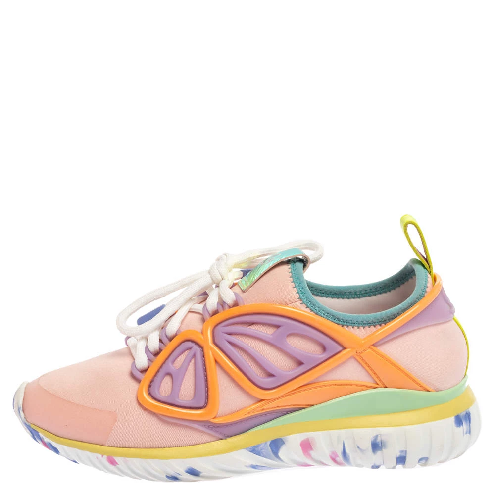 Vibrant and oh so lovely, these Candyfloss Fly By sneakers from Sophia Webster will always be delightful to wear! They come crafted from multicolor fabric and rubber and feature round toes and lace-ups on the vamps. They have been styled with butterfly wings on the sides and pull tabs and logo details on the counters. They are complete with comfortable insoles and durable outsoles.