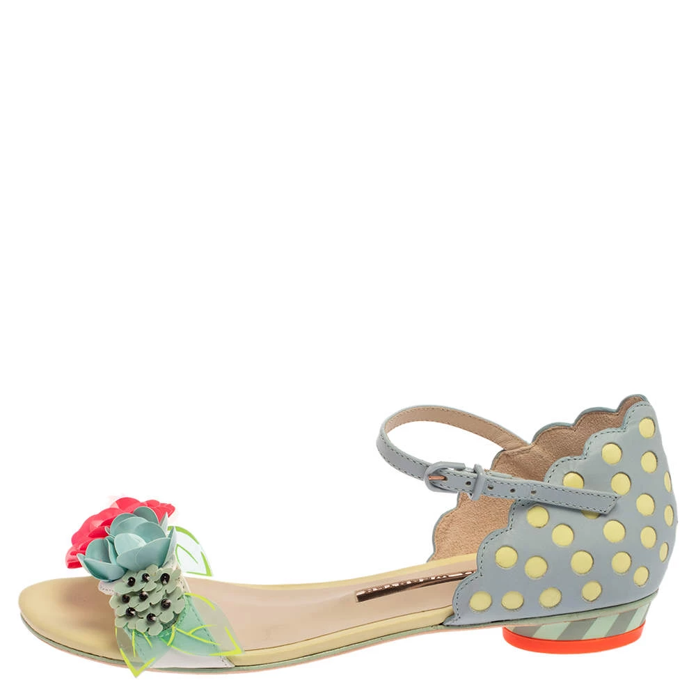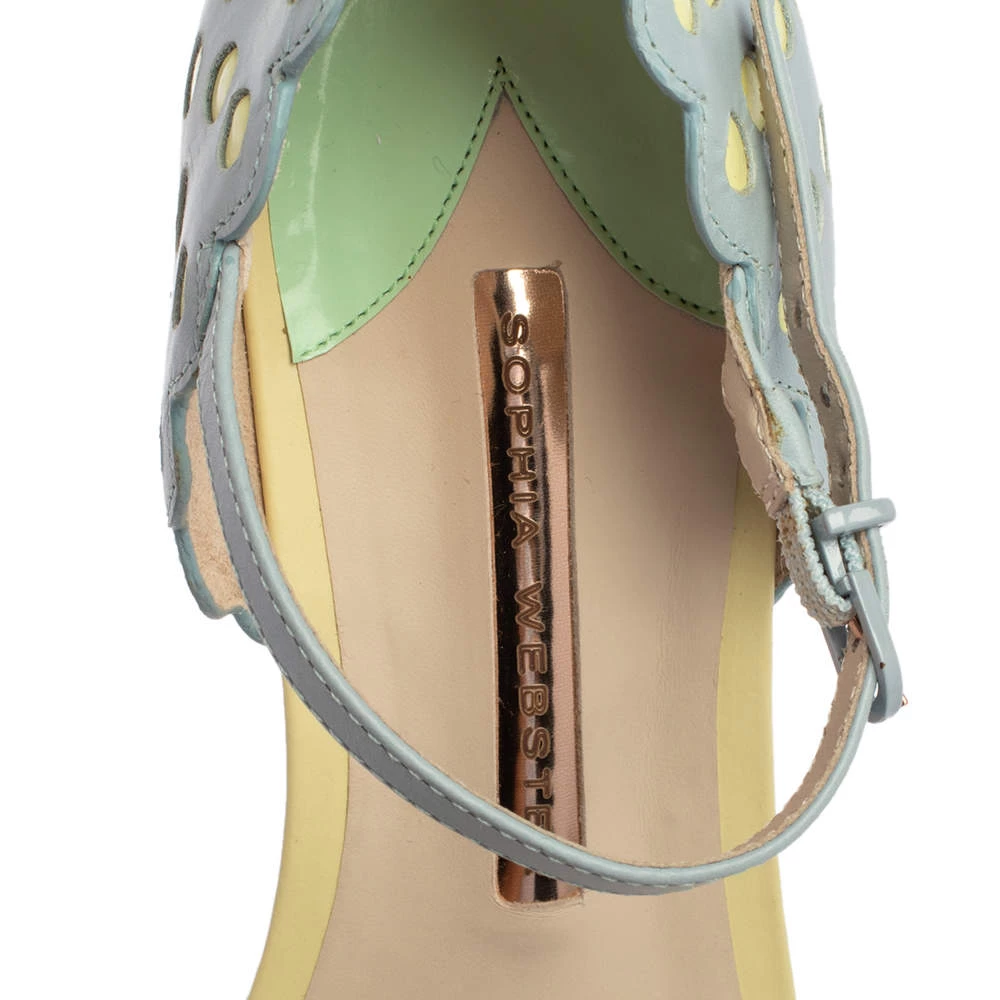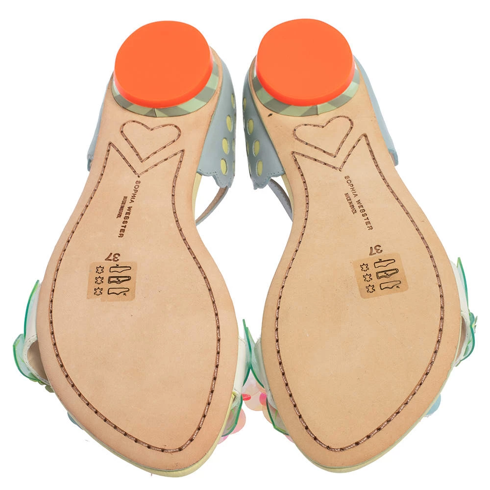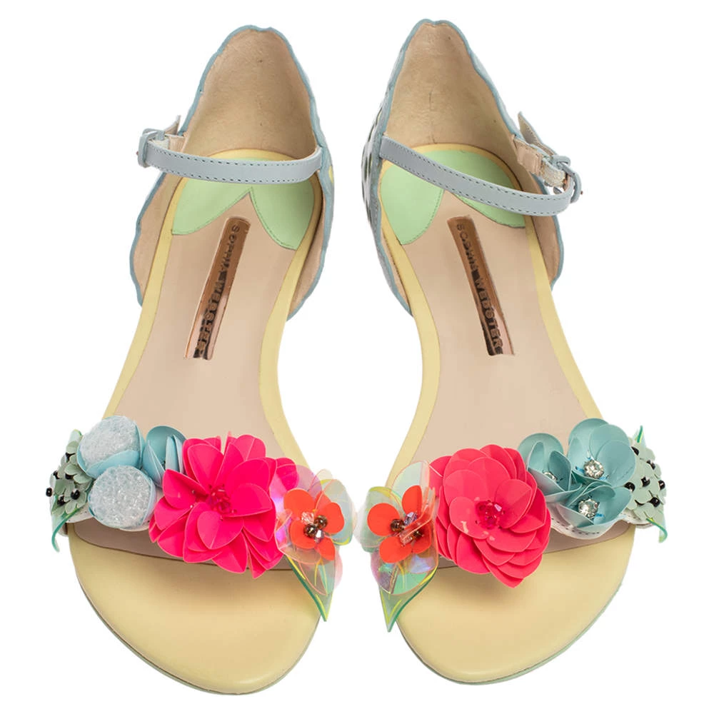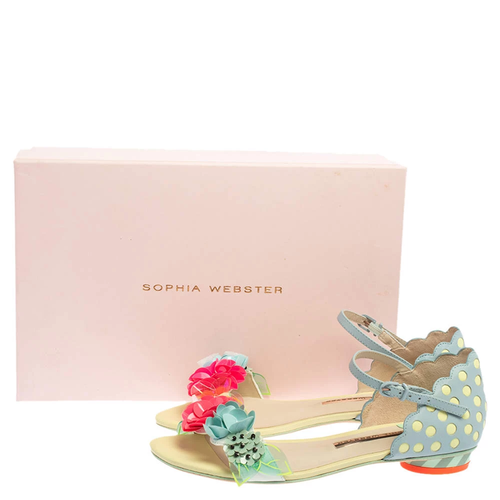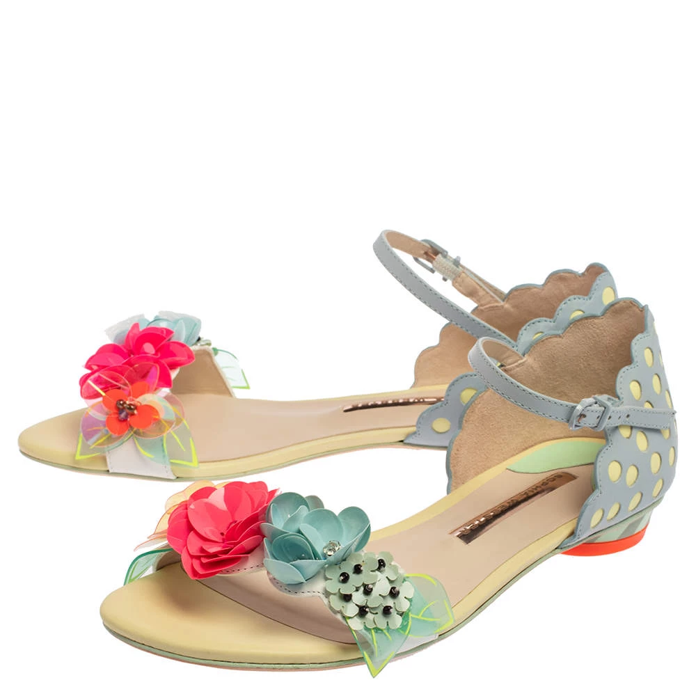 These sandals from Sophia Webster are just right on trend! They are crafted from multicolored leather and designed with buckled ankle fastenings and flower appliques on the vamps. This eye-catching pair is sure to have everyone in admiration.