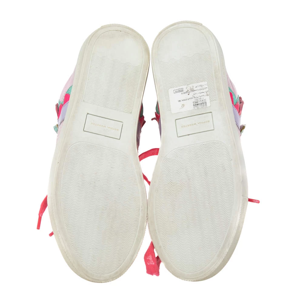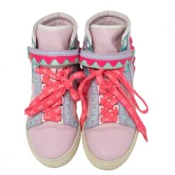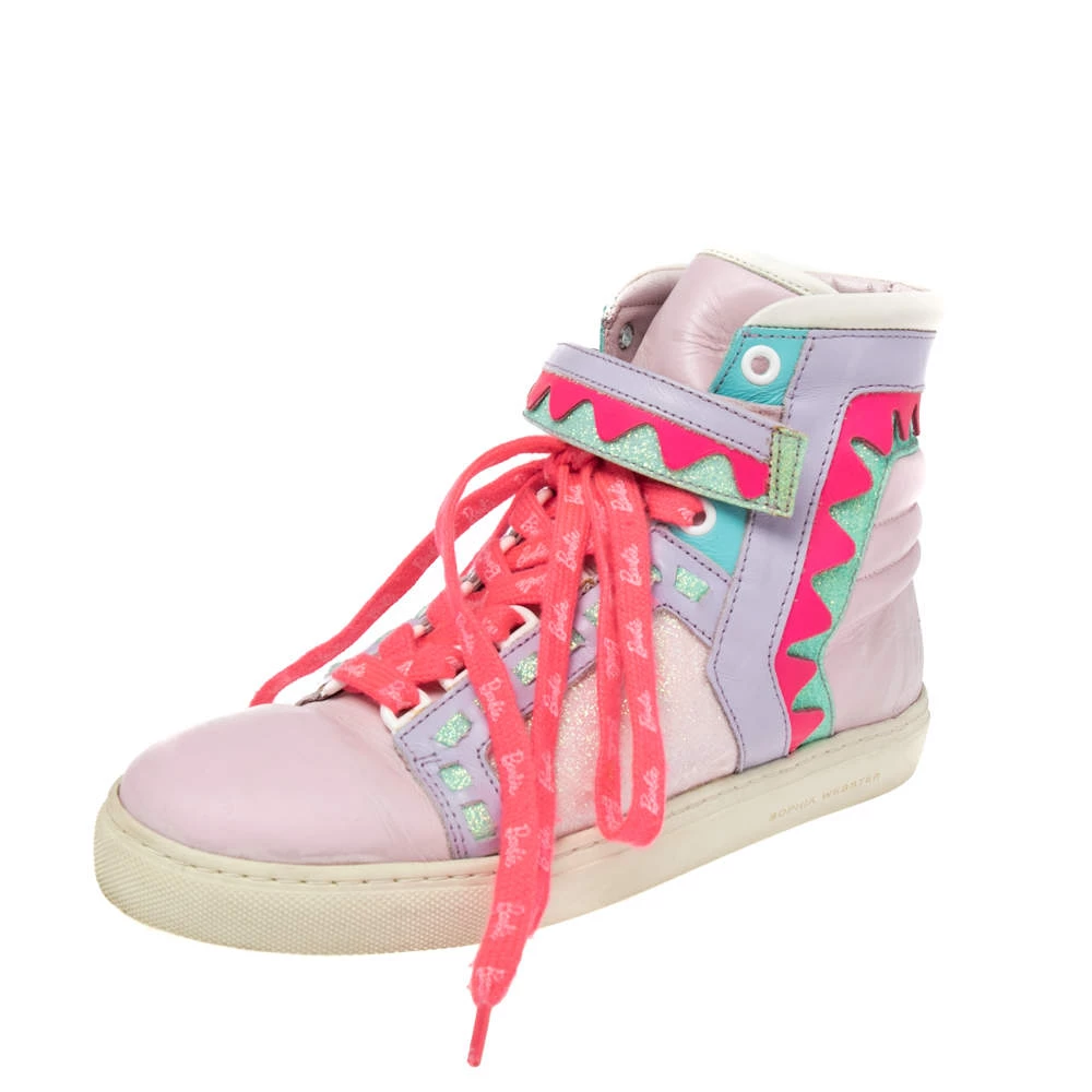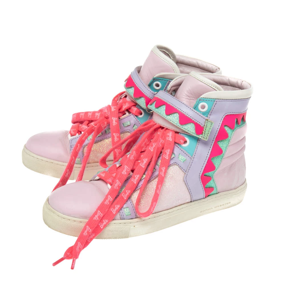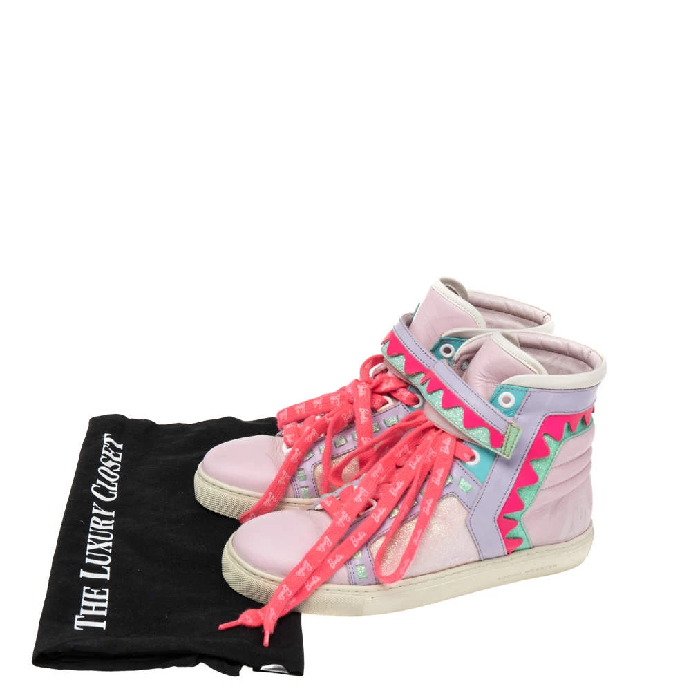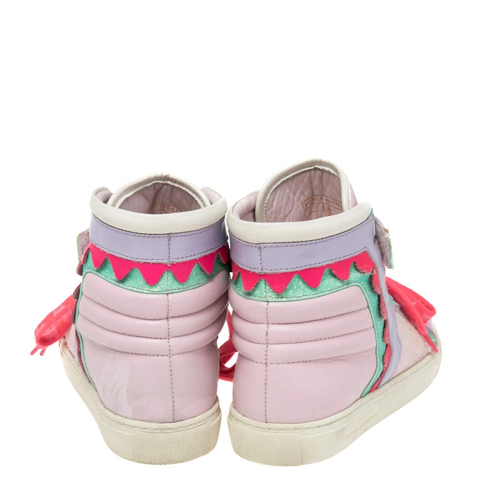Add a dash of color to your look by wearing these beauties from the House of Sophia Webster. Featuring a high-top silhouette, these Riko sneakers are designed using multicolored leather externally and detailed with glitter accents and white-toned hardware. Sport a high-end casual look with these sneakers.