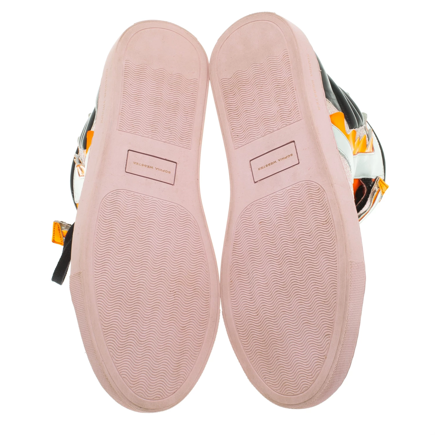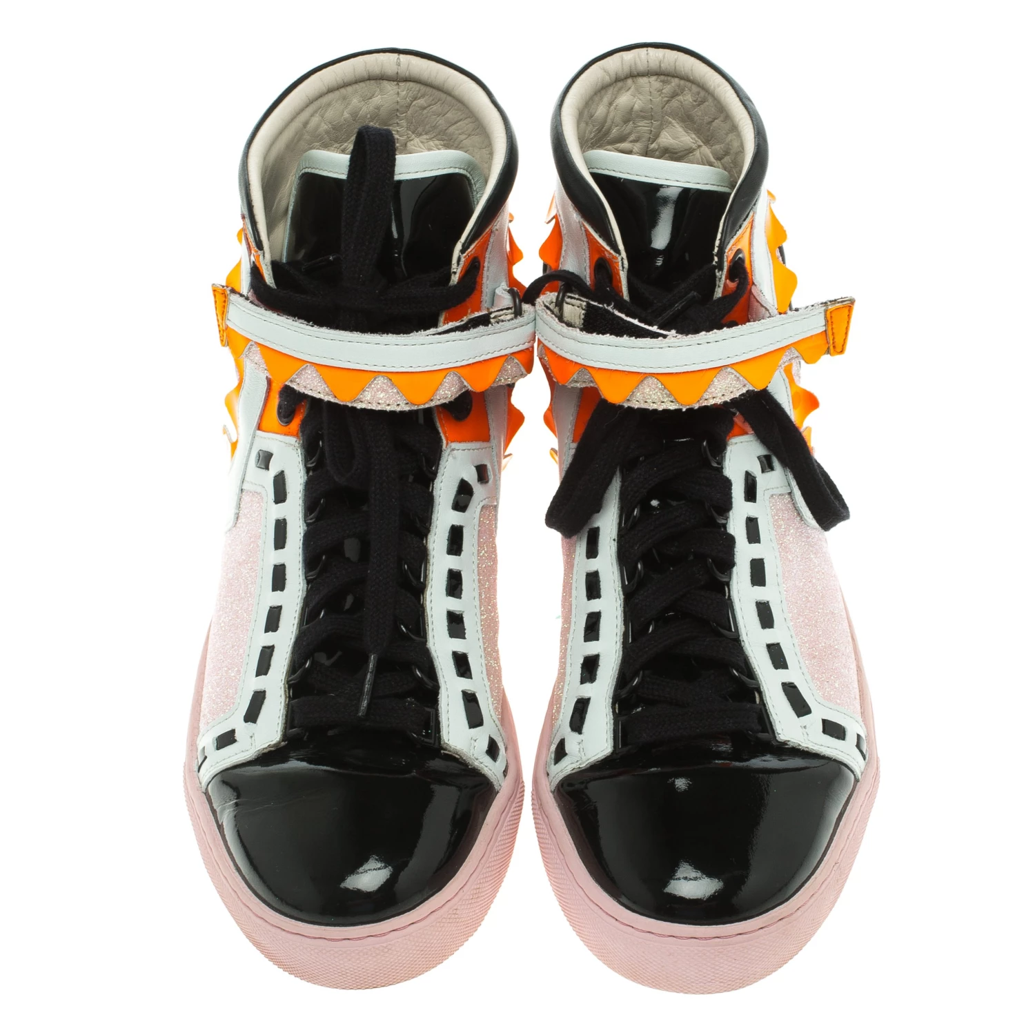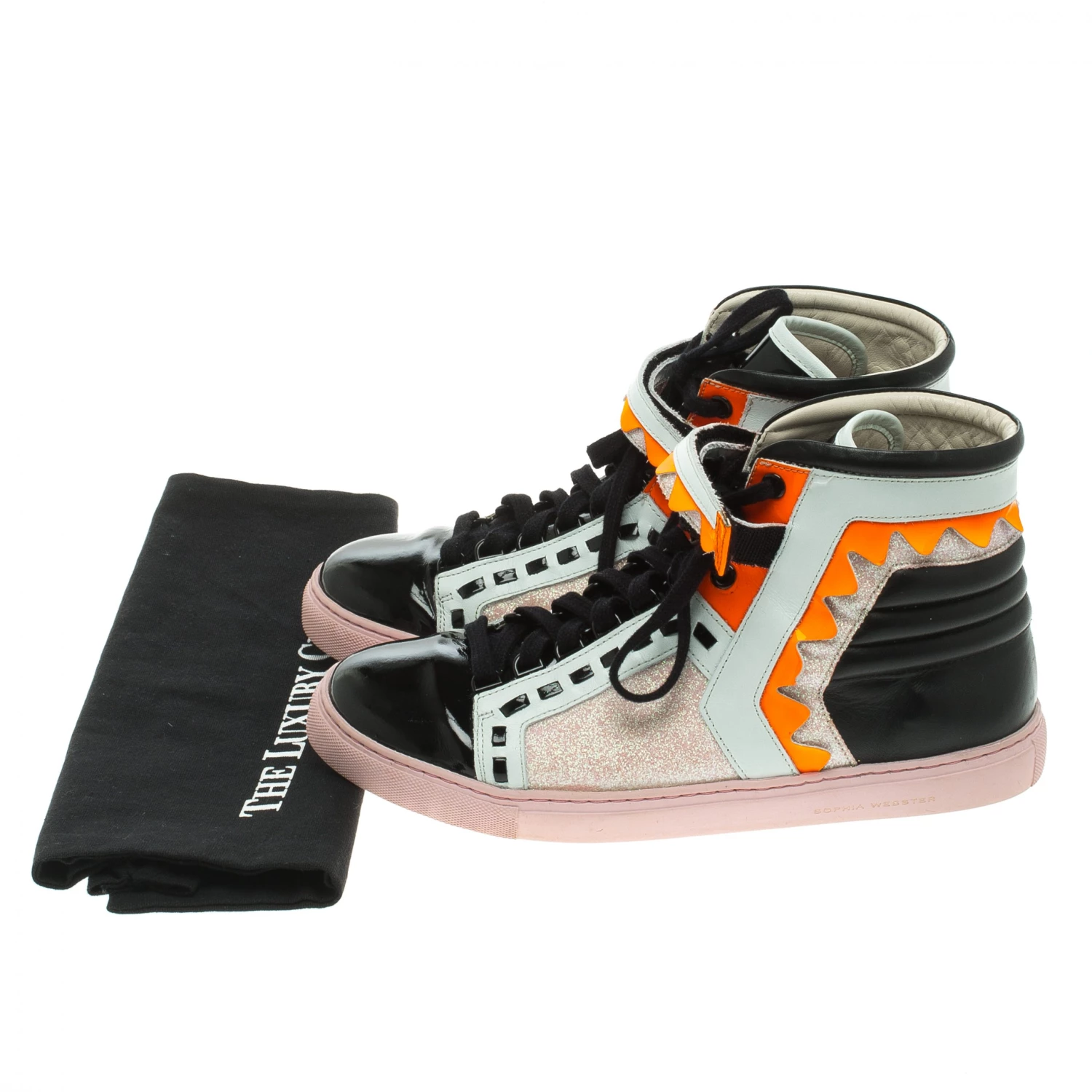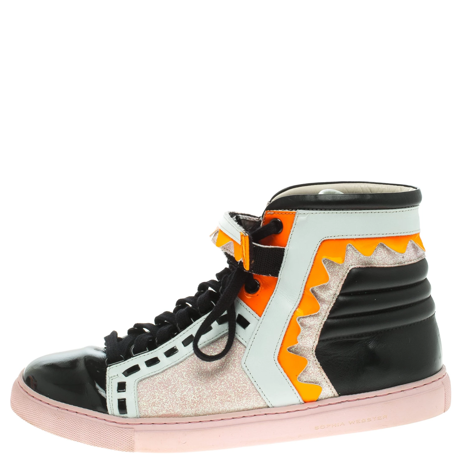 Refuse to compromise comfort with style and opt for this pair from Sophia Webster as it has been purposely built to help you look stylish and ease your feet. Crafted from leather and glitter, the sneakers carry a well-structured silhouette with a vibrant exterior and a velcro strap. Complete with laces, and leather insoles, these sneakers are a perfect buy.