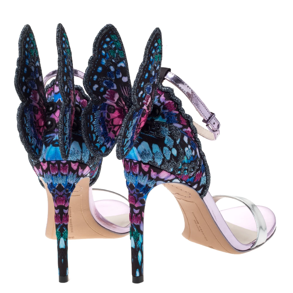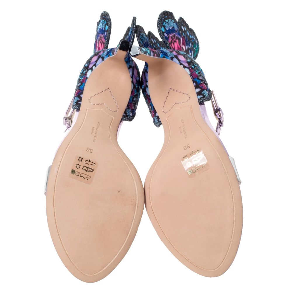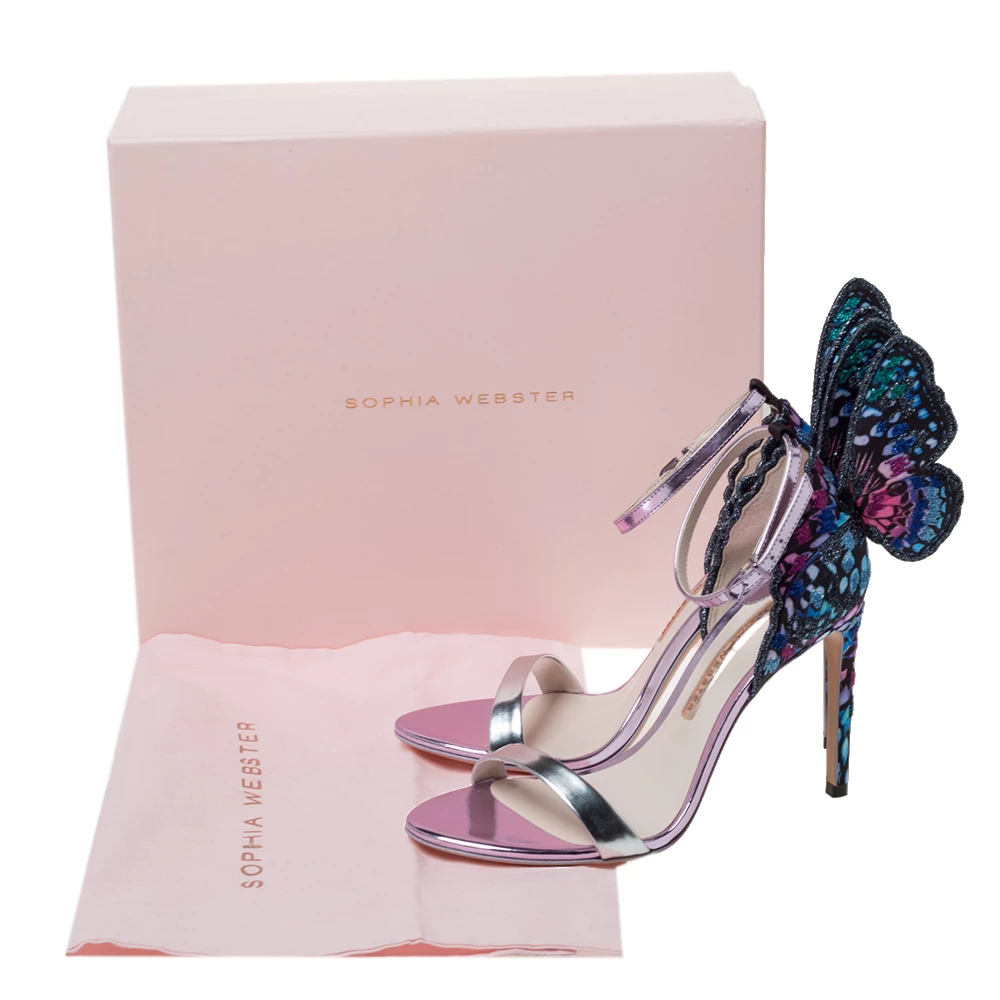 Sophia Webster charms us with these Chiara Butterfly sandals that are crafted from leather and lace fabric. They flaunt single vamp straps and buckled ankle straps. The heel counters are designed to resemble a butterfly’s wings, beautifully extending out. The sandals are equipped with comfortable leather-lined insoles and 10 cm stiletto heels.