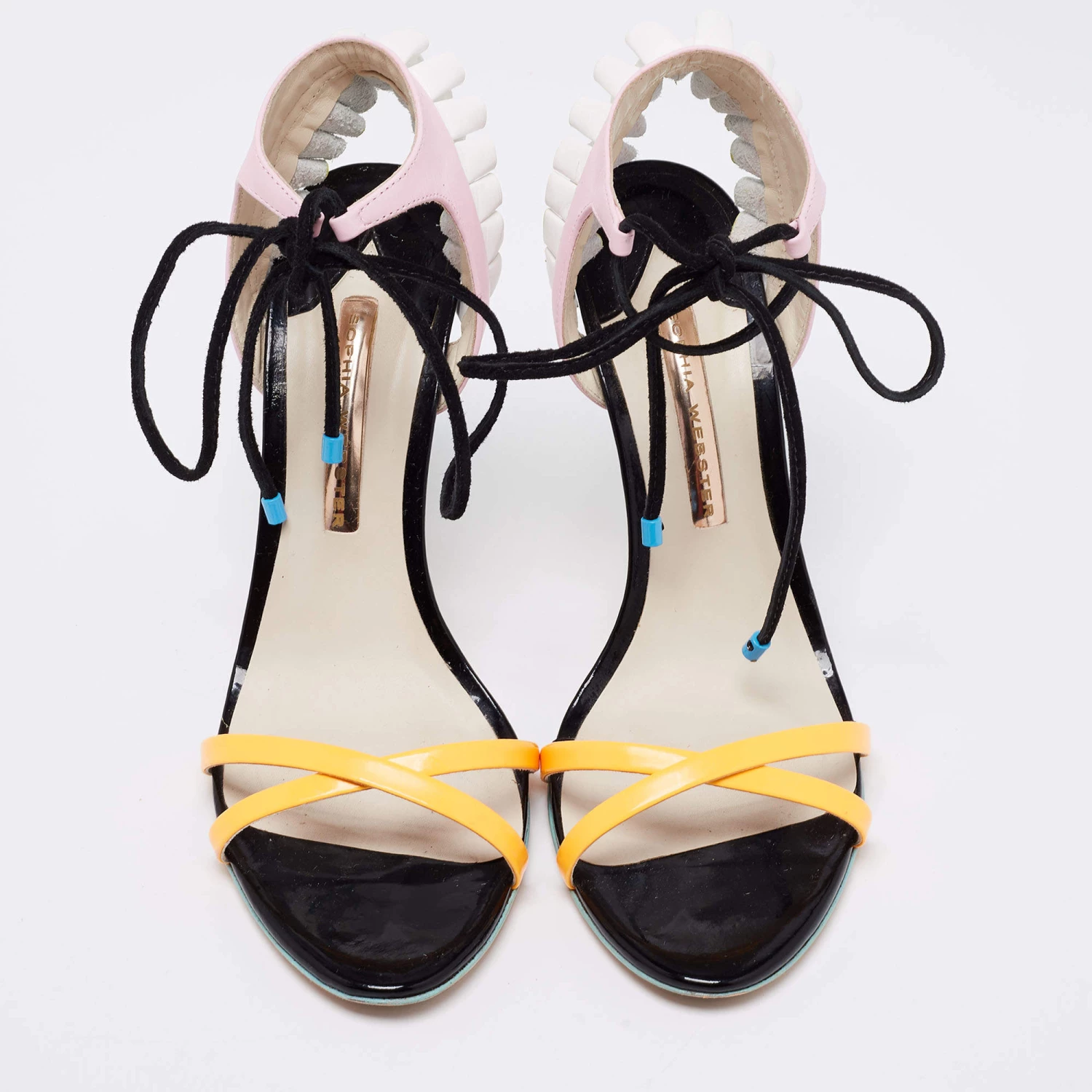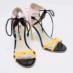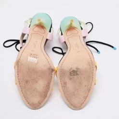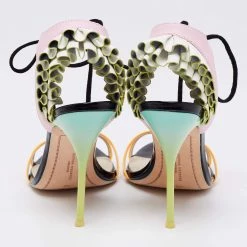 These sandals by Sophia Webster are utterly mesmerizing and filled with so much beauty, they make our hearts flutter. They carry a multicolored leather and patent exterior, ankle tie fastenings, gorgeous pleated counters, and slim heels that will surely make heads turn. They’ll look fabulous with sundresses!