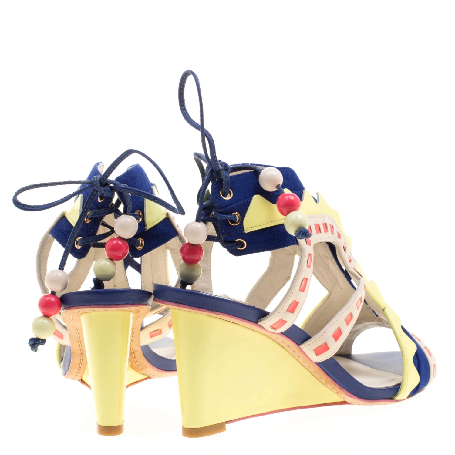 Every woman knows that wedges, no matter how high, are pretty easy to walk in. These Sophia Webster ones are the same, but with more fun and style. They’ve been designed with open toes, ankle ties with beads and a mix of leather and suede in multiple colours. Elevated on 7cm wedges, this pair will make a worthy buy.