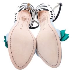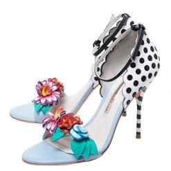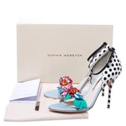 Jazz up your day time party wear looks with ease by adding these fun and flirty Sophia Webster open toe sandals to your look. Crafted in multicoloured leather along with lilico floral embellishment at the front, these sandals feature ankle straps, polka dot pattern on the counters and striped heels.
