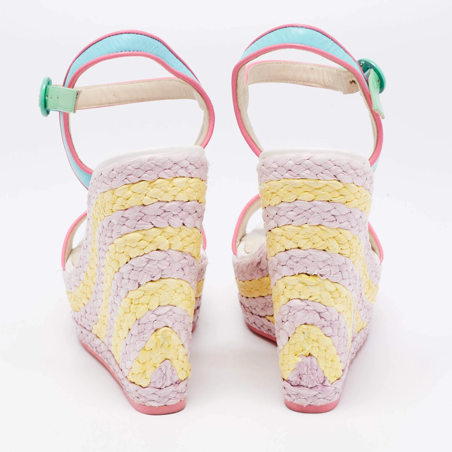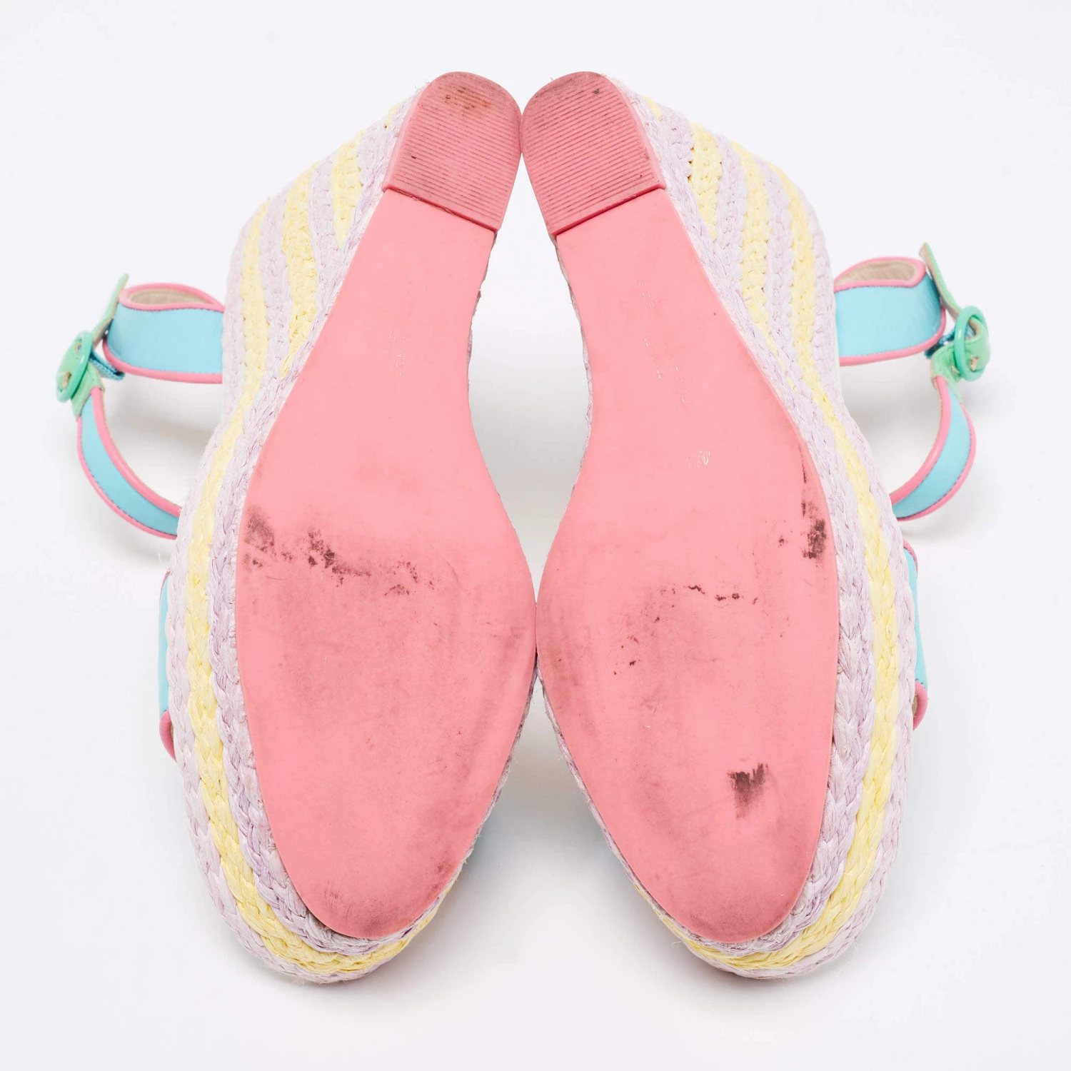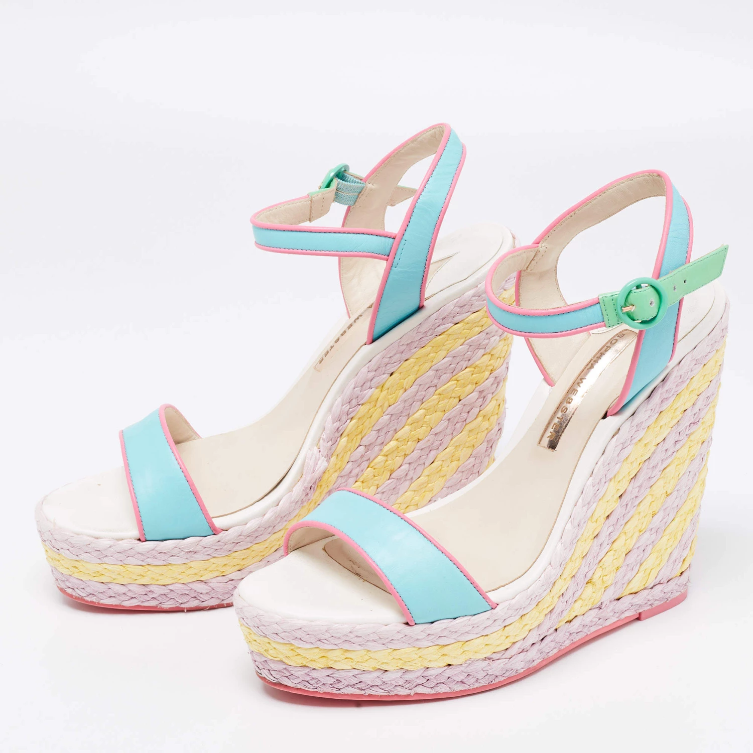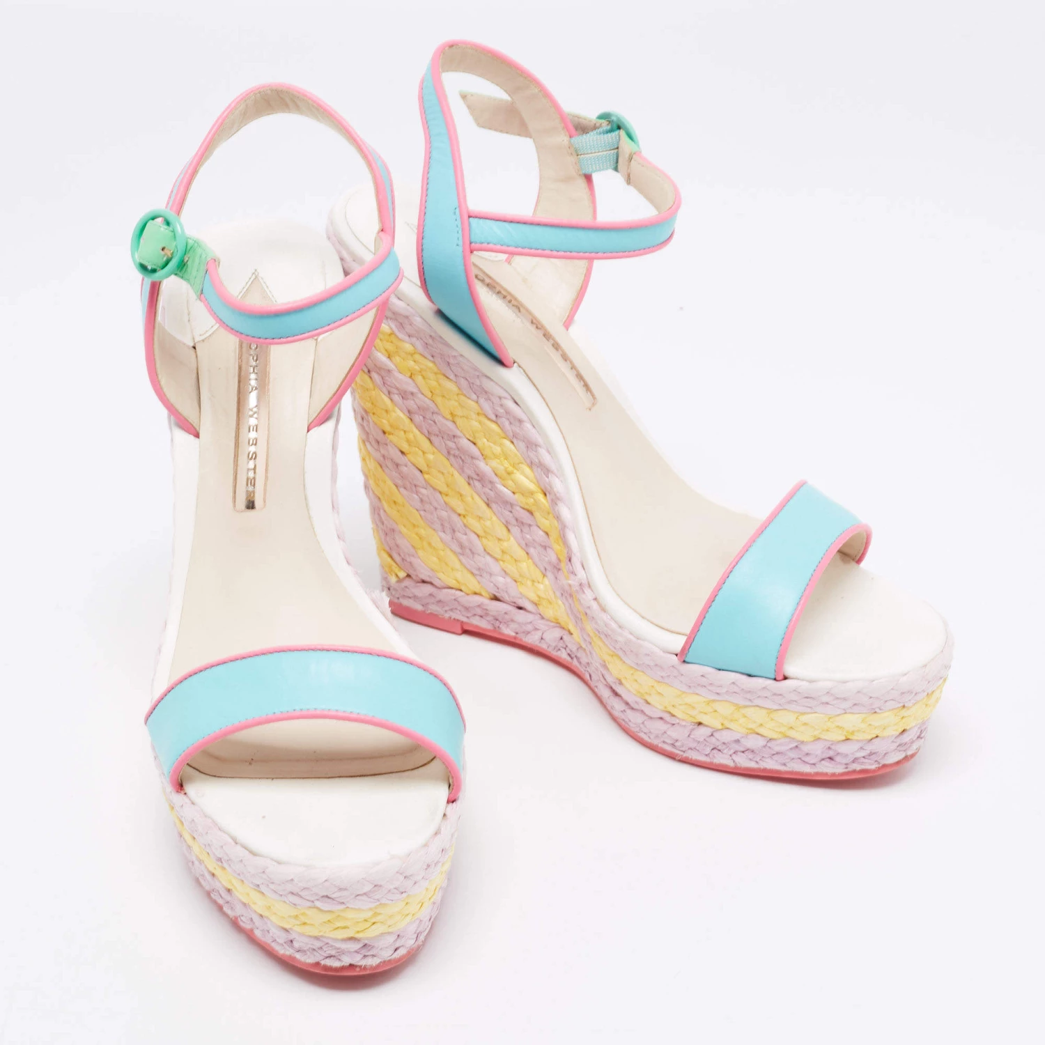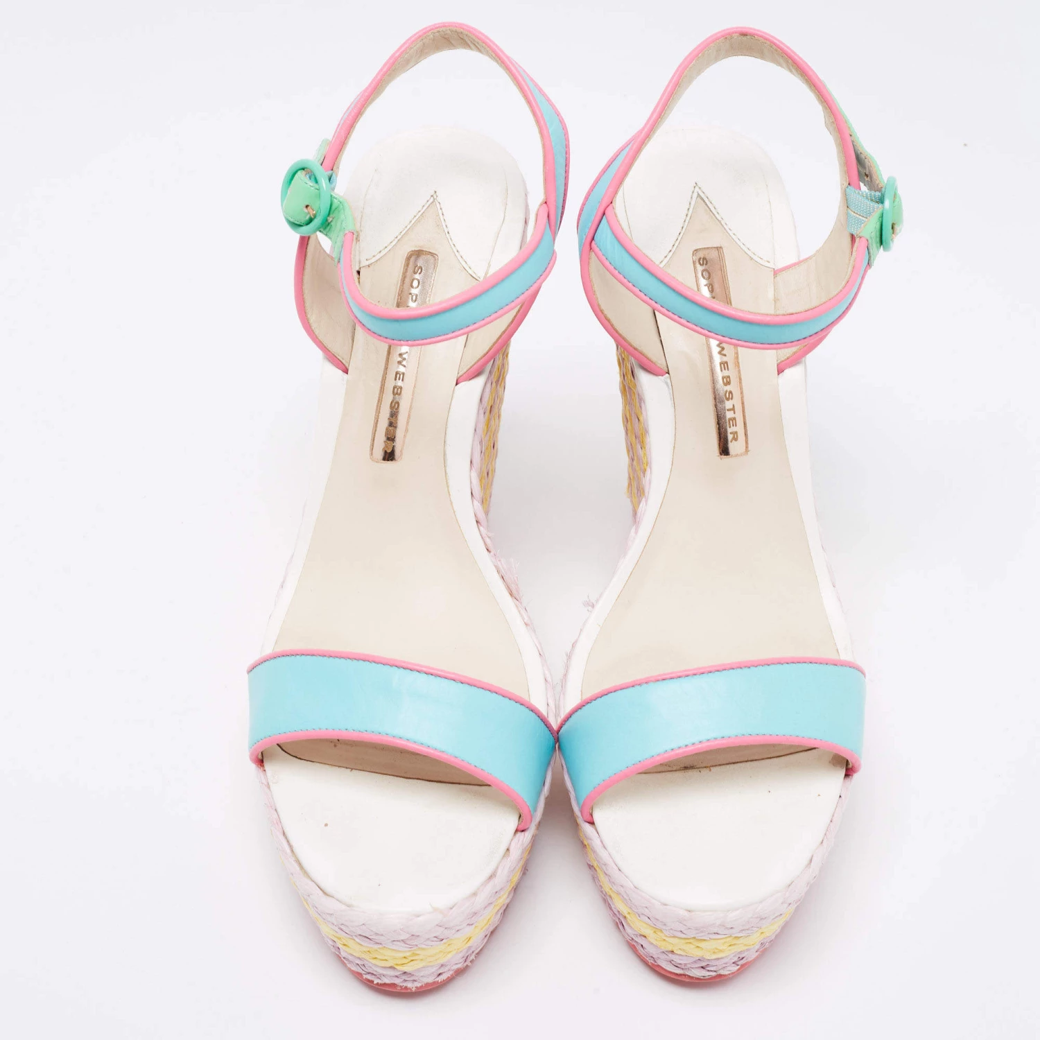 These Sophia Webster sandals come with a playful and trendy appeal. Made from multicolor leather, they are characterized by a strap on the vamps, an ankle buckle closure, platforms, and wedge heels.