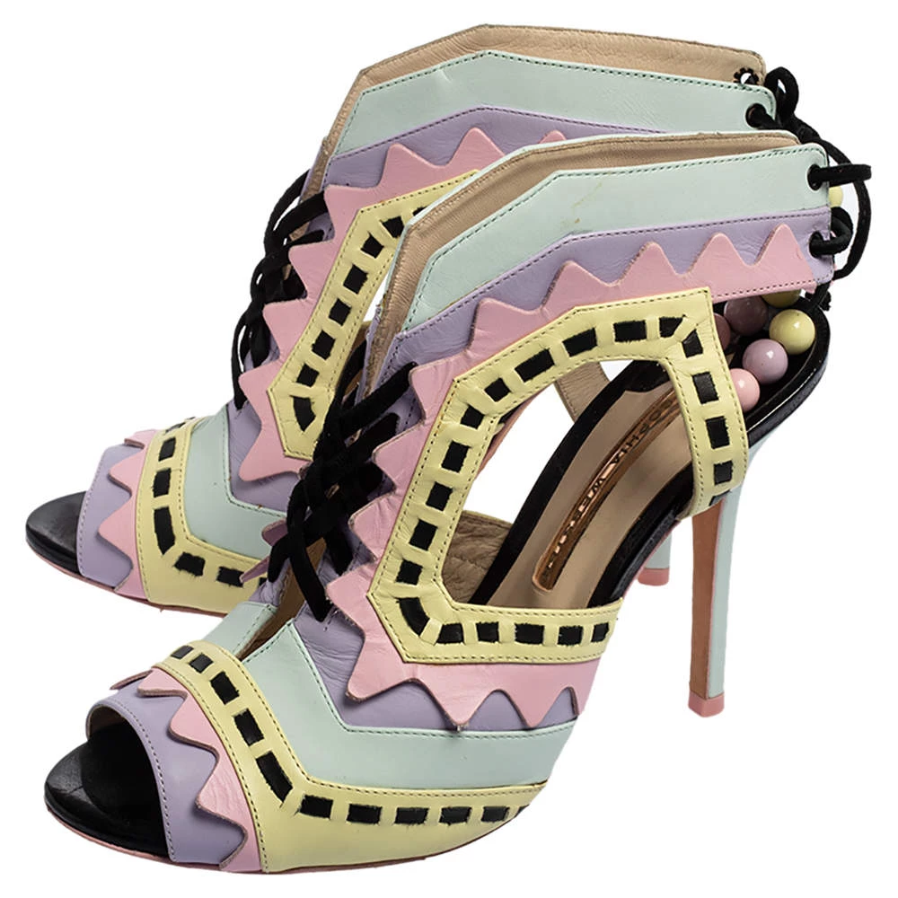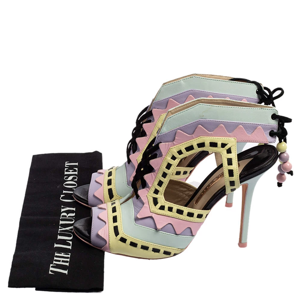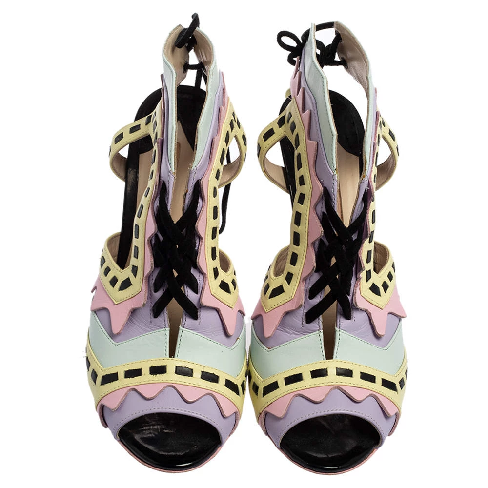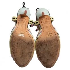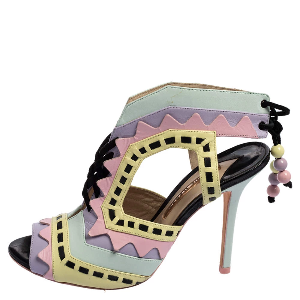 These sandals evidently exhibit the best of Sophia Webster’s designs. These Riko sandals are crafted from leather. They flaunt multiple colors, cut out details, open toes, and ties at the back. These beauties are elevated with 11.5 cm stiletto heels.