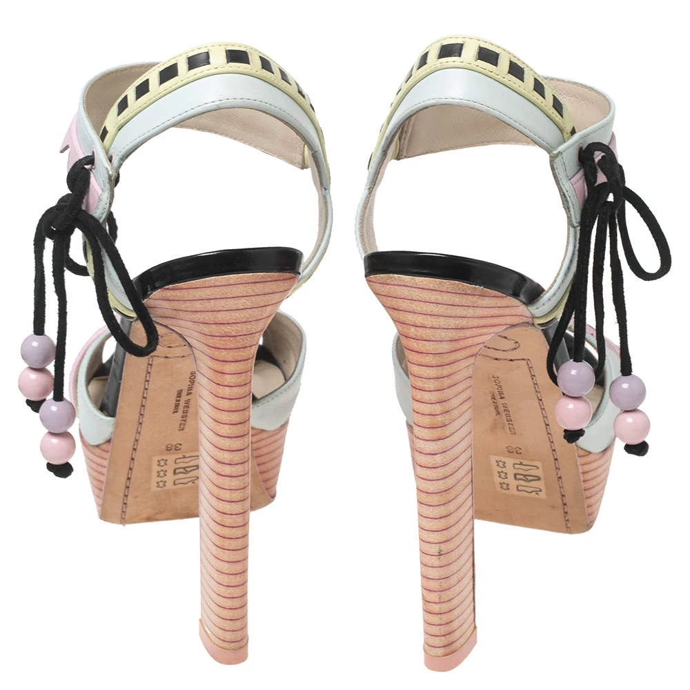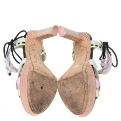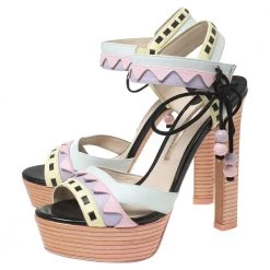 These sandals evidently exhibit why people in search of something exclusive go to Sophia Webster. These lovely platform sandals are crafted from multicolored leather. They flaunt beautiful pastel hues, cut-out patterns, and elastic closures. The super-stylish pair is elevated with 14 cm heels.