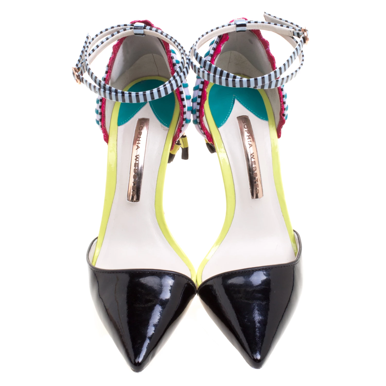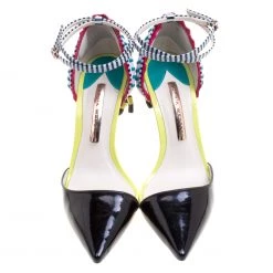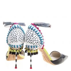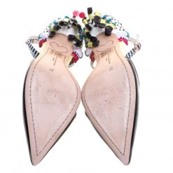 Creativity is a gift and it is evidently abundant with Sophia Webster. The brand has a flair for incorporating marveling ideas with shoemaking and maybe that’s why their designs are so coveted. These “Xavier” pumps are simply unbelievable. They flaunt an exterior made from patent leather and artistically designed with a plain front and circus-like detailing on the counters. The pumps are made whole with striped ankle straps, and 10.5 cm heels.