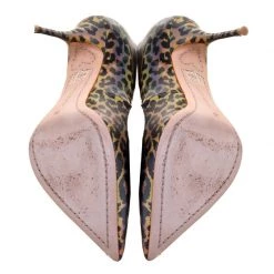 Stun the crowd whenever you step out in this pair of pumps by Sophia Webster. The exterior has been crafted from textured polyurethane and designed with leopard prints. They feature pointed toes and leather lined insides. The pumps are so chic, even the stiletto heels have the leopard print spread.