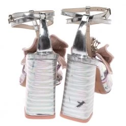 How cute and elegant do these block heel sandals from Sophia Webster look! These multicolored sandals are crafted from metallic leather and PVC feature an open toe silhouette with bow-detailed front straps. They flaunt buckled ankle fastenings and comfortable leather-lined insoles complete this wonderful pair.