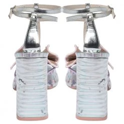 How elegant do these block heel sandals from Sophia Webster look! These multicolored sandals, crafted from leather and PVC, feature an open toe silhouette with bow-detailed uppers. They bring buckled ankle fastening and comfortable leather-lined insoles.