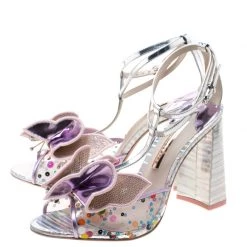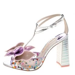 How cute and elegant do these block heel sandals from Sophia Webster look! These multicolored sandals are crafted from leather and PVC feature an open toe silhouette with bow-detailed front straps. They flaunt buckled ankle fastenings and comfortable leather lined insoles complete this wonderful pair.