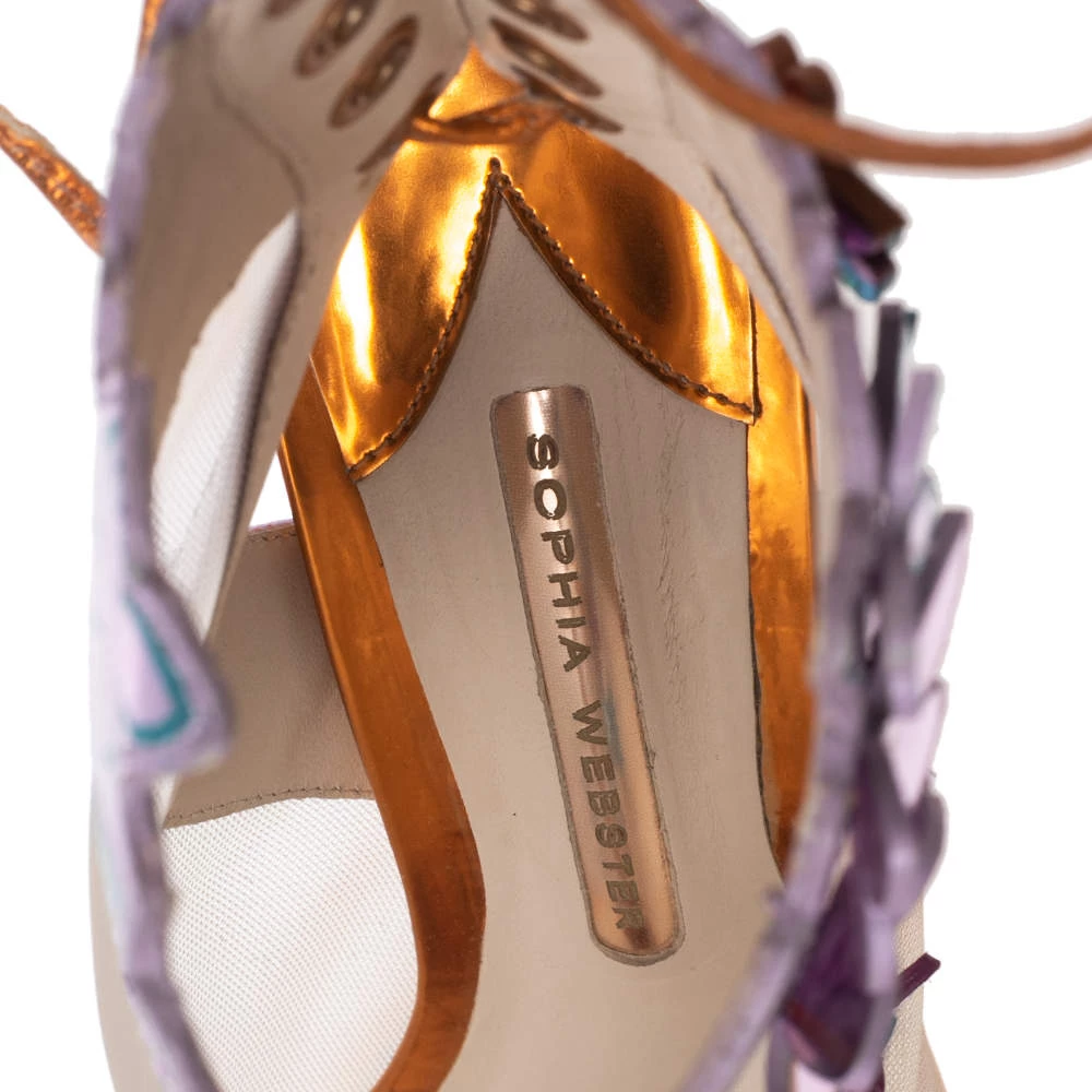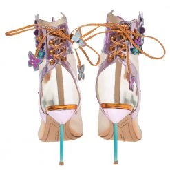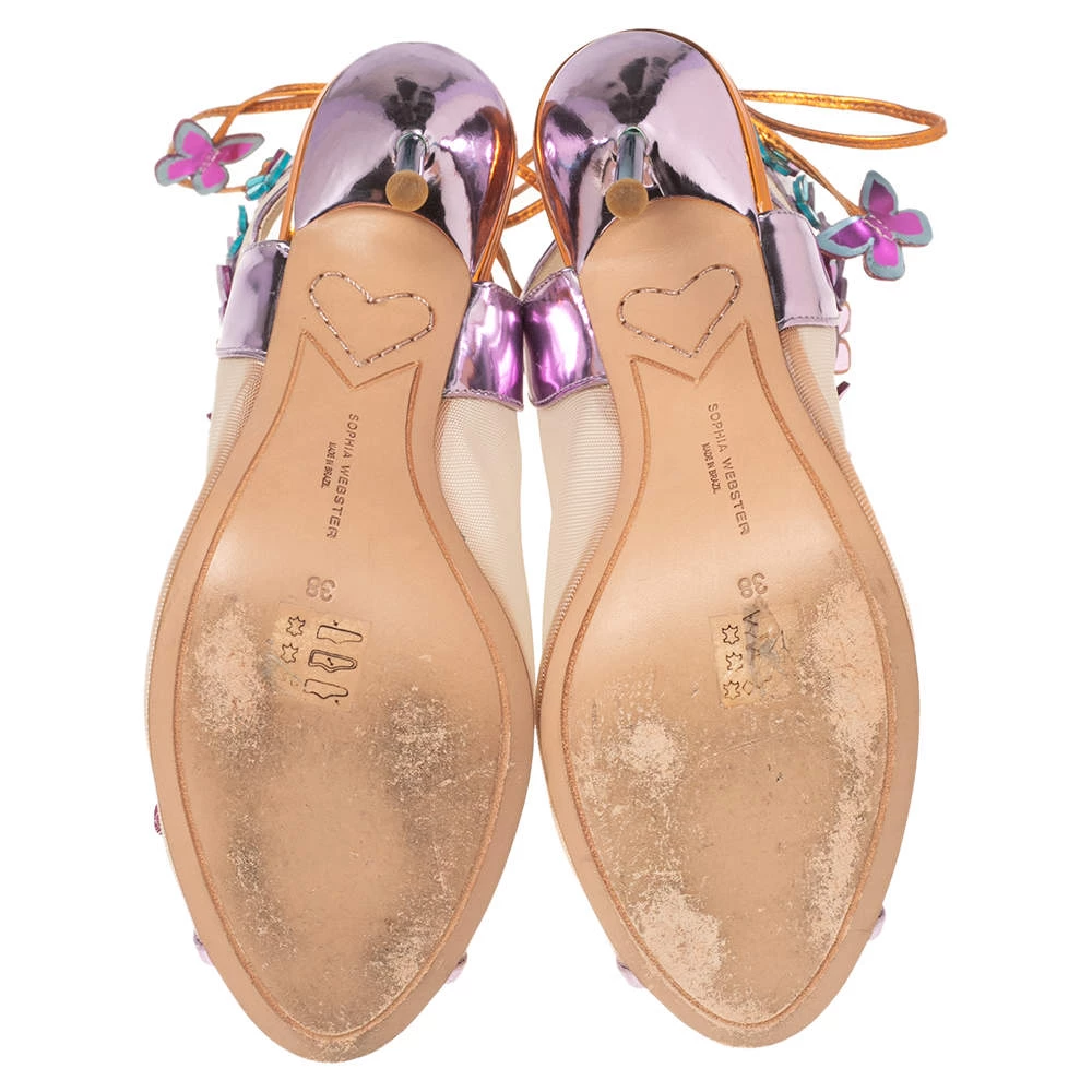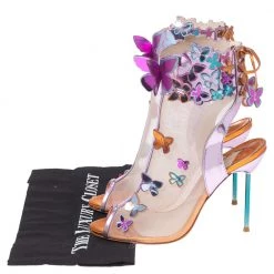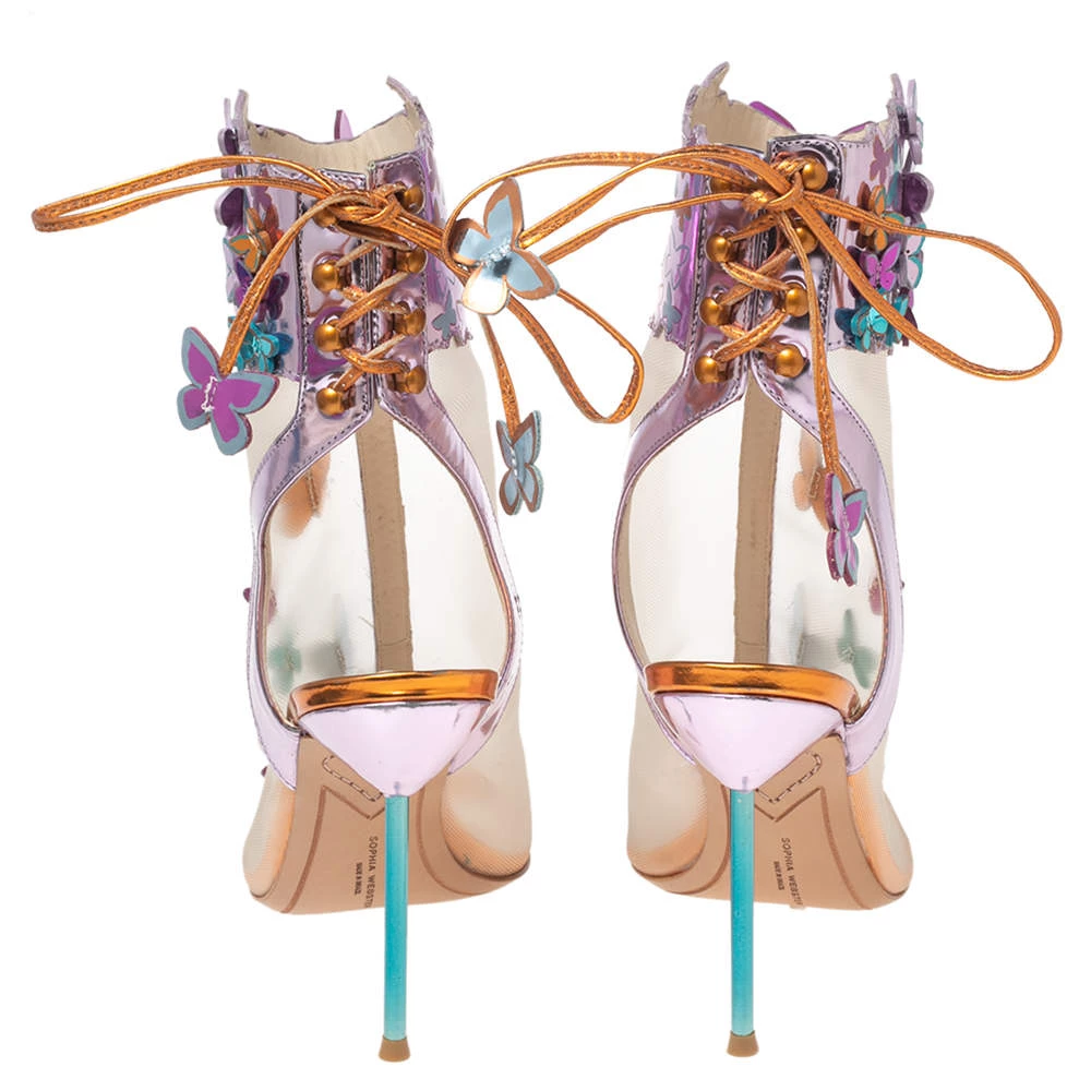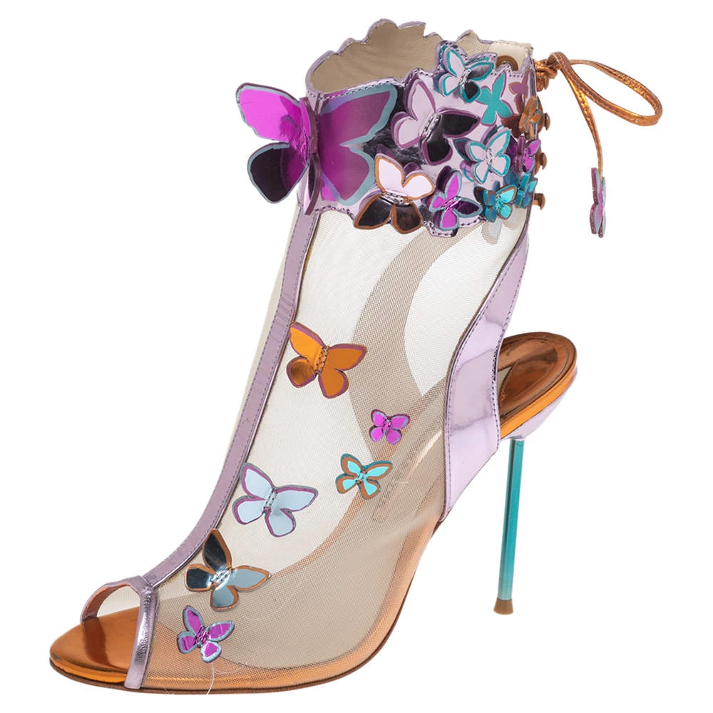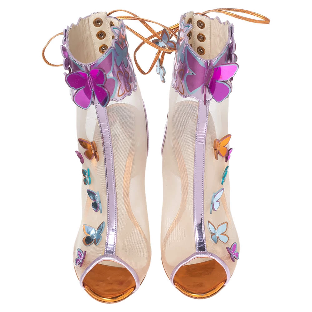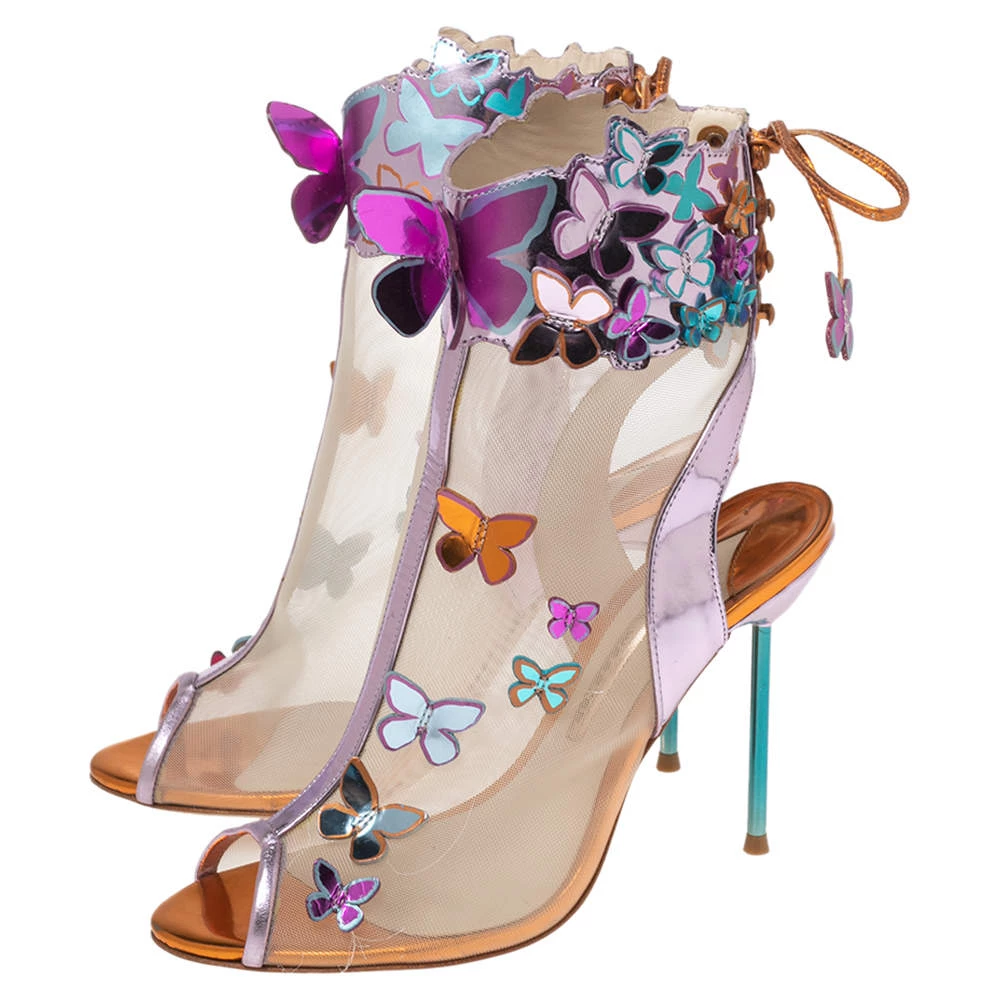 Meticulously crafted to perfection, these beautiful boots from Sophia Webster will certainly make you look fabulous! They are made from multicolored net and leather into an ankle-length silhouette. Their shape is elevated with multicolored Butterfly appliques, peep-toes, and pointy heels.