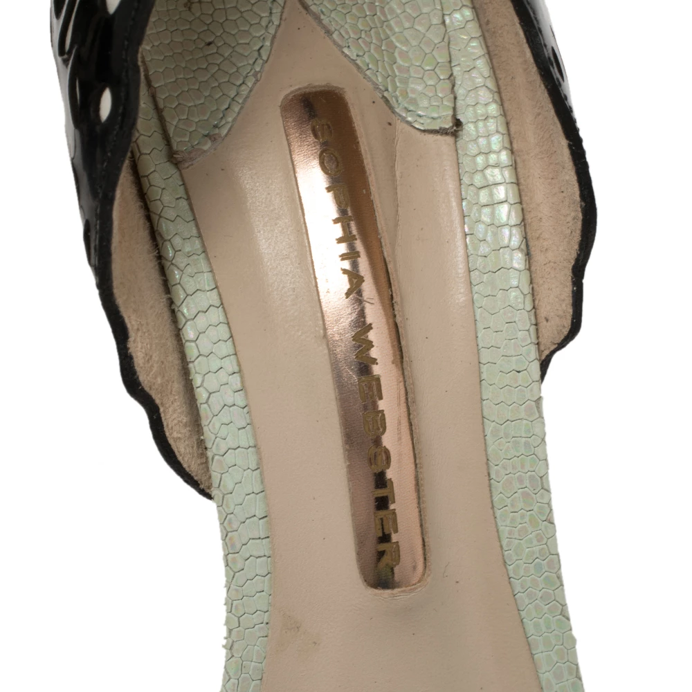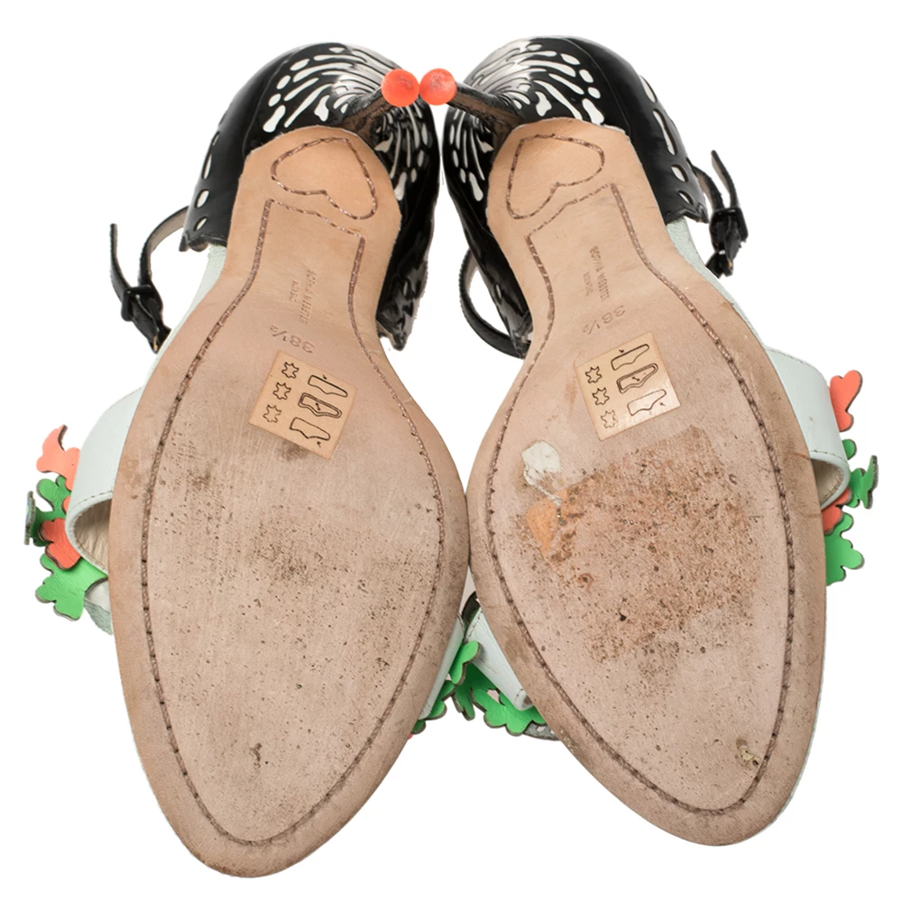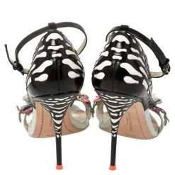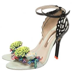 One of Sophia Webster’s well-known styles, the Lilico, has been iterated with distinctive heel counters. This black open-toe pair is created with front straps, decorated with multicolored floral appliqués for a statement-making look. Wear them to lift the hem of a knee-skimming dress.