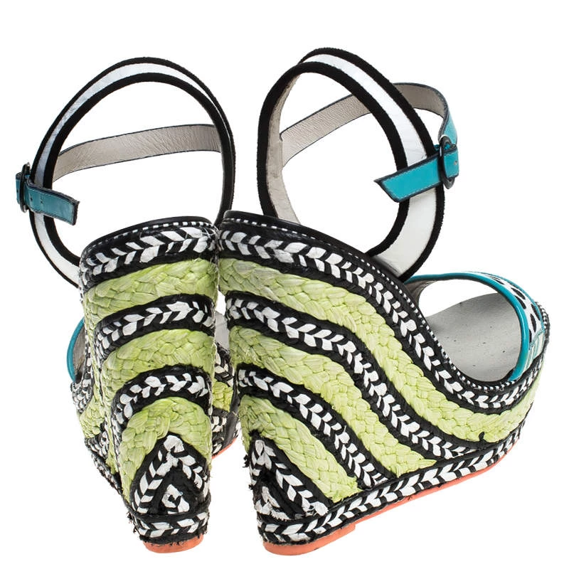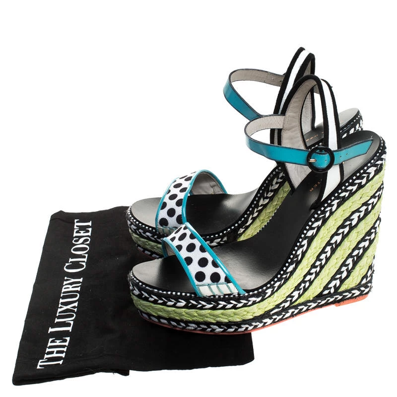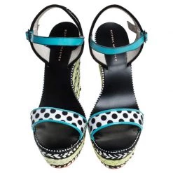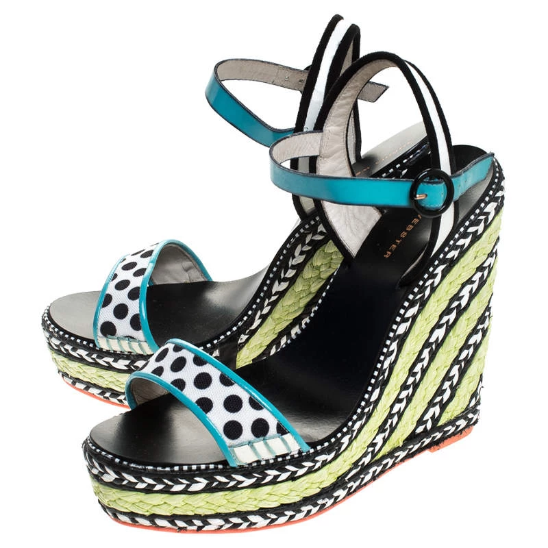 Stay casual and keep your feet pretty in these sandals from Sophia Webster. These sandals crafted from the finest quality are the epitome of style and comfort. Start exploring the fashionista in you with these multicolored polka dot sandals. They come with espadrille wedges and buckled ankle straps.