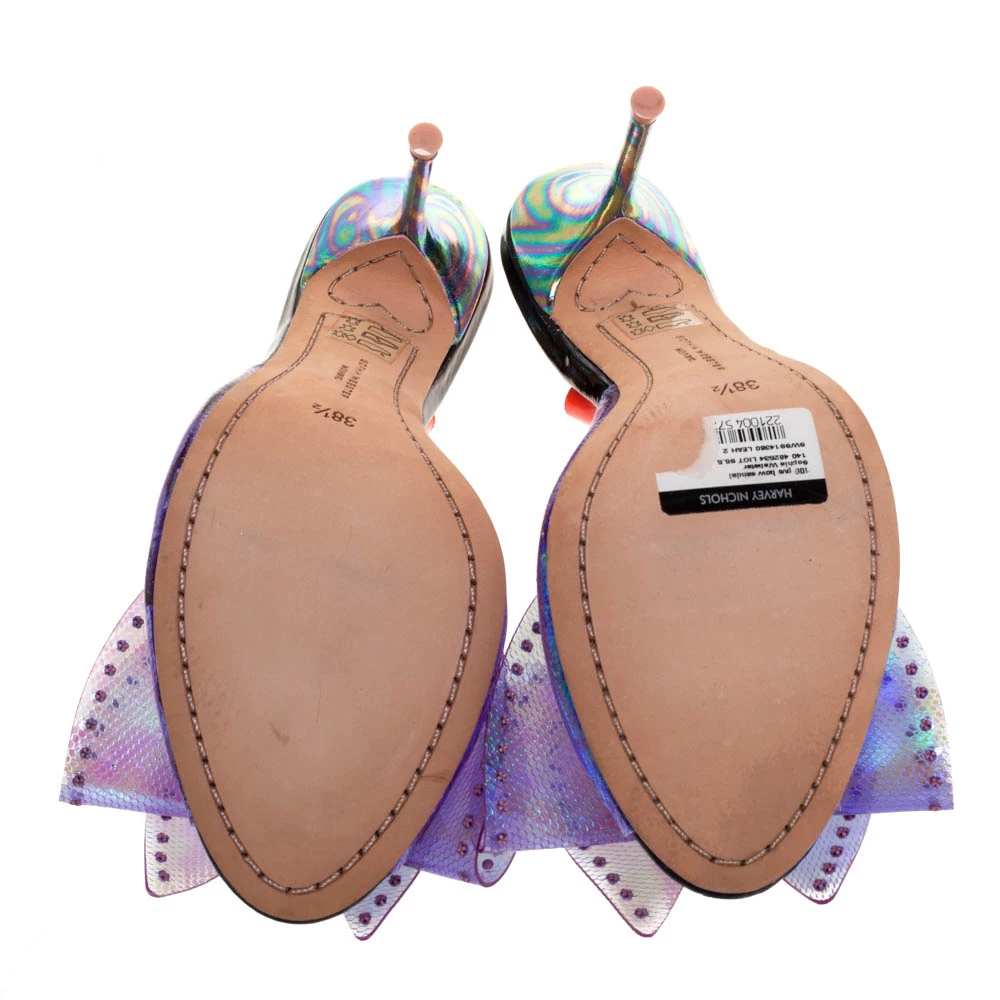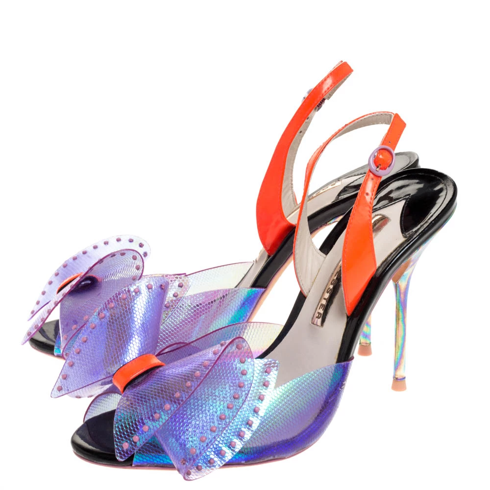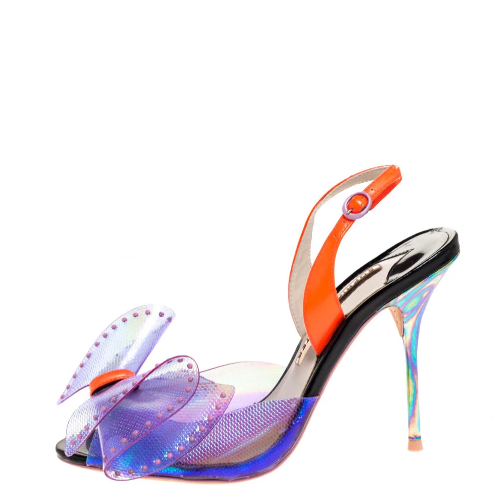 Stay casual and keep your feet pretty in these sandals from Sophia Webster. These beautiful PVC and patent leather sandals are a perfect option while choosing footwear for any occasion. They are styled with large bows, slingbacks, 10.5 cm heels and leather soles. These sandals will keep you at the top of your style game.