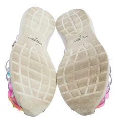 Sophia Webster has been a favorite worldwide for her unique, creative, and modern designs. She continues to charm us with these stunning Lilico sandals. These multicolor sandals are crafted from PVC and flaunt lovely flowers embellished on the T straps and come equipped with buckled ankle wraps. Comfortable leather lined insoles complete this gorgeous pair.